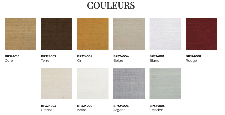 Soie sauvage unie en 10 coloris, rappelant l'opulence et les teintes chatoyantes des robes de cour Second Empire, ces soies contrecollées sont le mariage parfait entre un savoir-faire oriental séculaire et la vision novatrice de la Maison Pierre Frey.