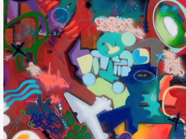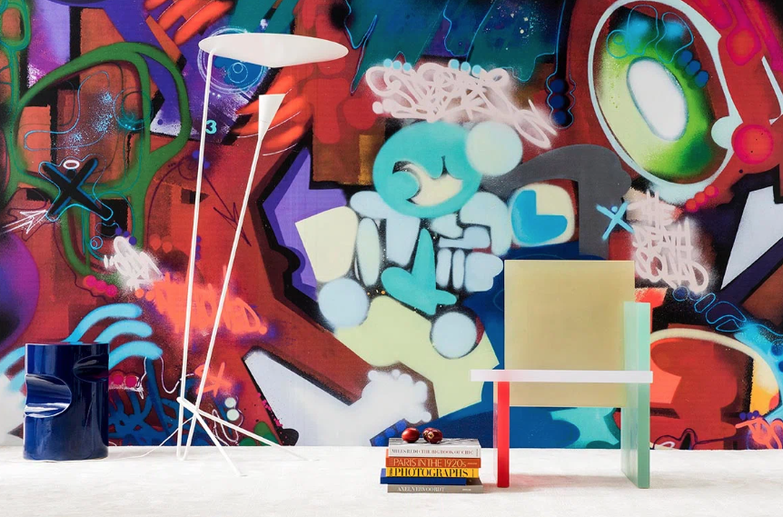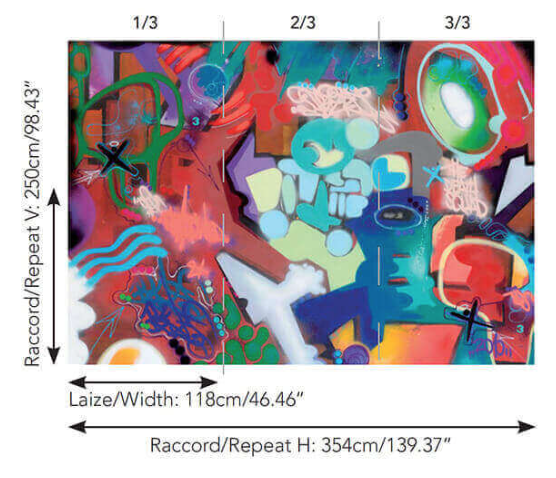 Depuis un certain nombre d'années, Toxic, artiste majeur du Street Art, a choisi d'exprimer son art également sur toile. Ce motif imprimé sur intissé en 3 panneaux reproduit une oeuvre très colorée de l'artiste peinte à la bombe.