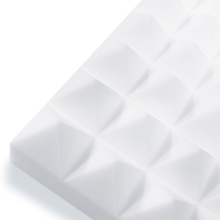 Les panneaux absorbants sont réalisés soit en willtec (mousse de mélamine), soit en mousse PU. pinta PYRAMIDE est disponible en différentes épaisseurs et sur demande, avec des couleurs personnalisées.
