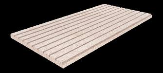 Panneau décoratif et acoustique rainuré d'épaisseur 35mm, en laine de bois avec une fibre de largeur 1mm, et à bords chanfreinés B pour vissage sur support acier/bois/béton.