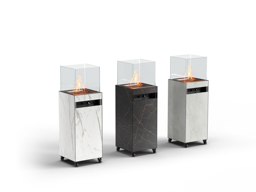 Vous avez un jardin ou une terrasse et vous avez l’impression qu’il vous manque quelque chose ? Le chauffage extérieur Oia est la solution parfaite. Il crée une atmosphère chaleureuse et agréable lors des soirées fraîches. Choisissez parmi trois pierres frittées durables : Dekton Daze, Dekton Laurent ou Dekton Kreta, et profitez de passer du temps à l’extérieur.