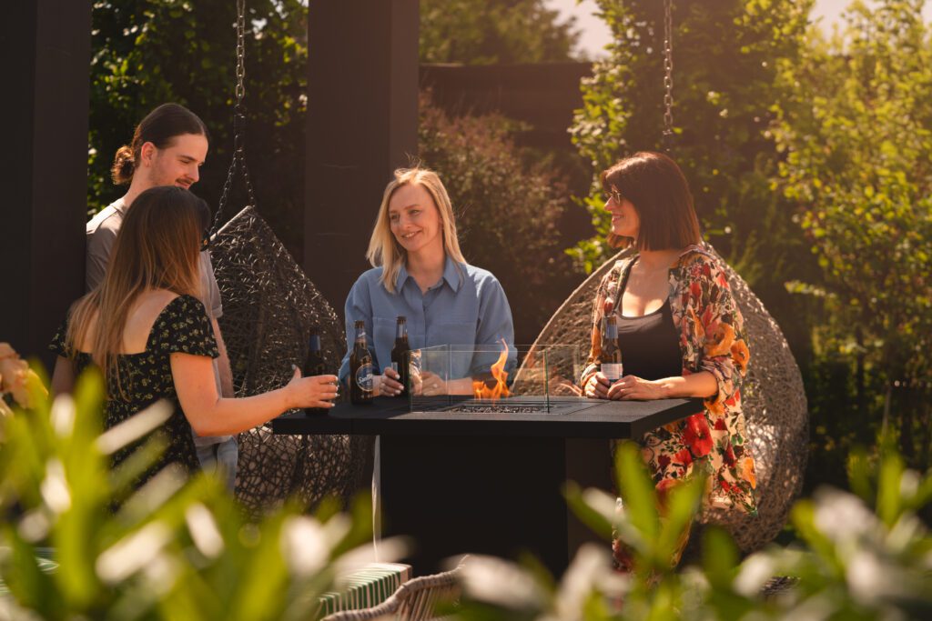 Rehaussez votre expérience de vie en plein air avec la table de foyer au gaz carrée haute. Ce foyer et table de cocktail 2-en-1 innovant combine un design fonctionnel avec un attrait esthétique, créant un point focal captivant pour tout espace extérieur.