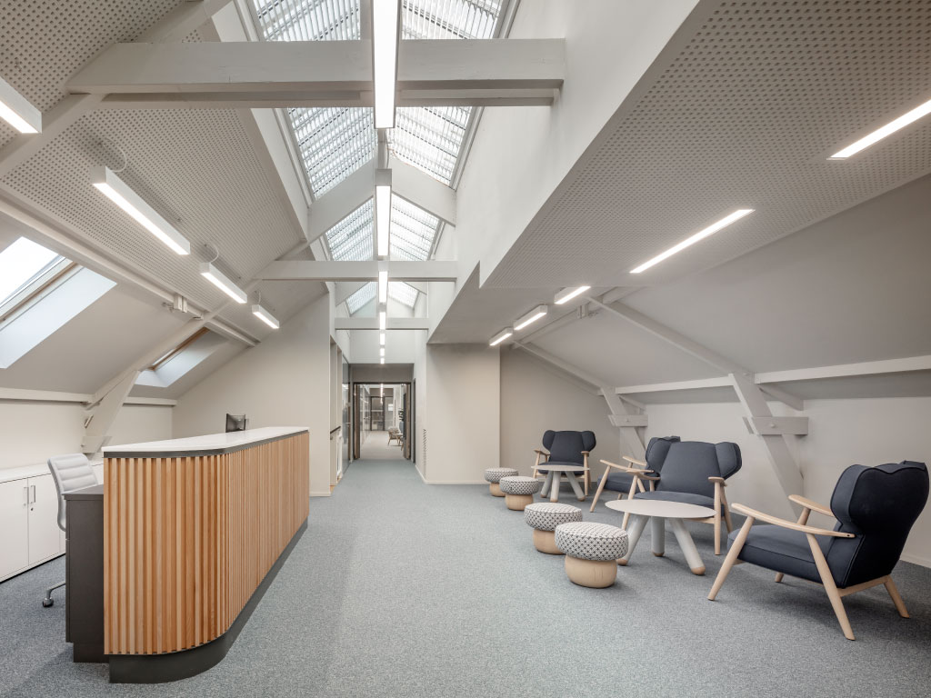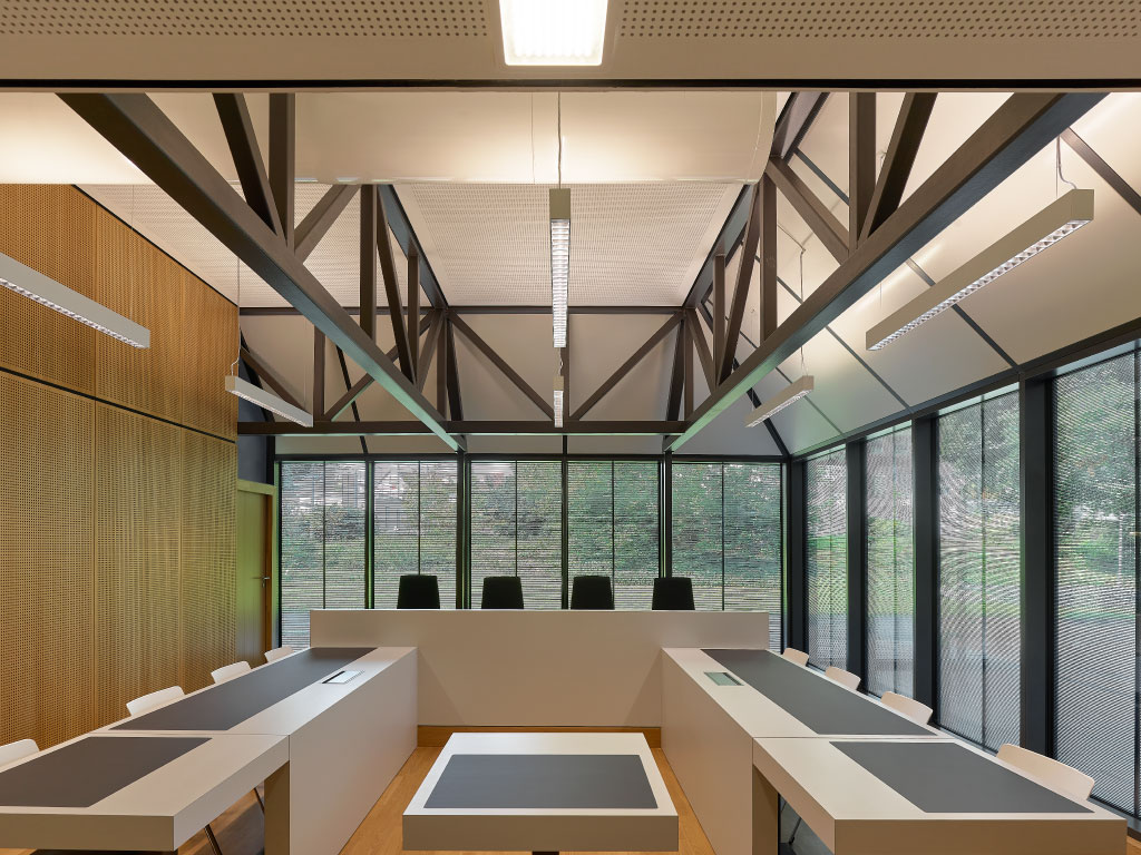Le luminaire profilé présente un design de grille spécial, est disponible en différentes couleurs à effet (entre autres en optique métallique) et peut également être commandé avec différents caches (diffuseur opale ou microprismatique). La lumière est diffusée à gauche et à droite, ce qui évite les ombres gênantes sur le plan de travail.