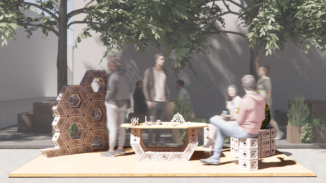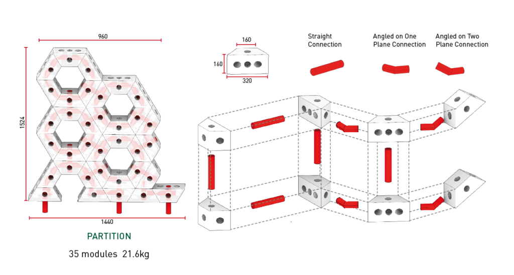 Nous avons découvert que le mycélium était un matériau polyvalent pour diverses applications architecturales. Contrairement au béton et à l’acier, les biocomposites de mycélium sont renouvelables et biodégradables. Ils peuvent être cultivés et récoltés avec un impact minimal sur l’environnement. Ils sont également légers, résistants au feu et possèdent de bonnes propriétés isolantes.