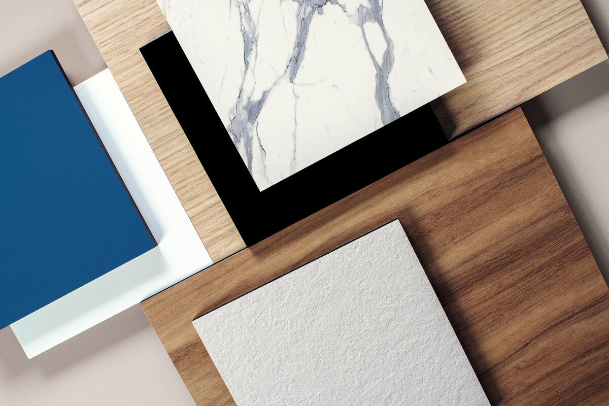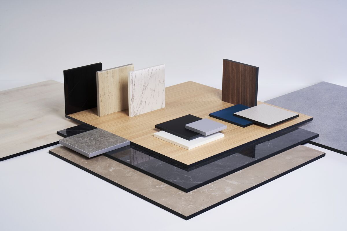 Le stratifié Reysipur® offre une grande variété décorative, composé de 2 faces décoratives et d’un noyau noir, il est disponible en 267 décors (unis, bois, matières) et 11 finitions.