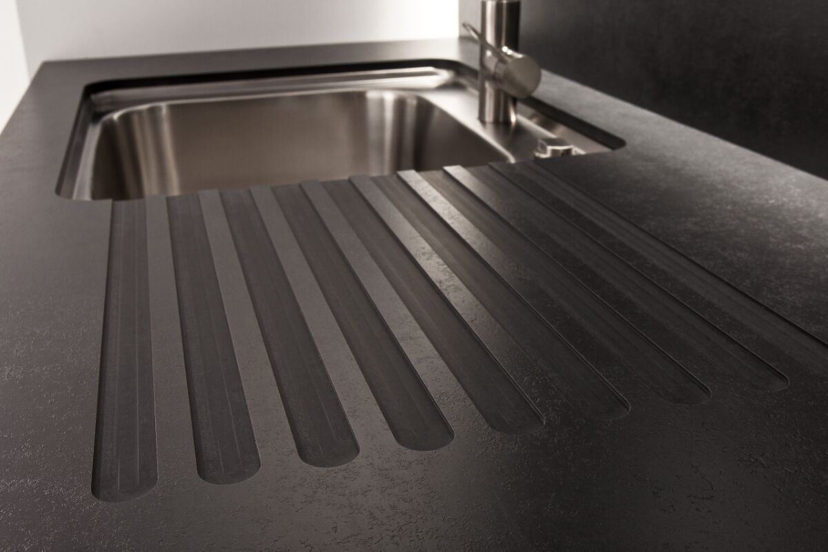 - Usinable dans la masse : possibilité d’intégrer des égouttoirs rainurés et des espaces encastrés permettant d'alléger le design de votre cuisine.