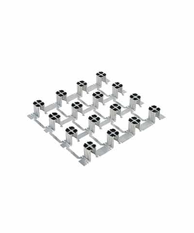 Les méga vis sont galvanisées et assurent la connexion d’angle des plaques de sol aux supports de sol.