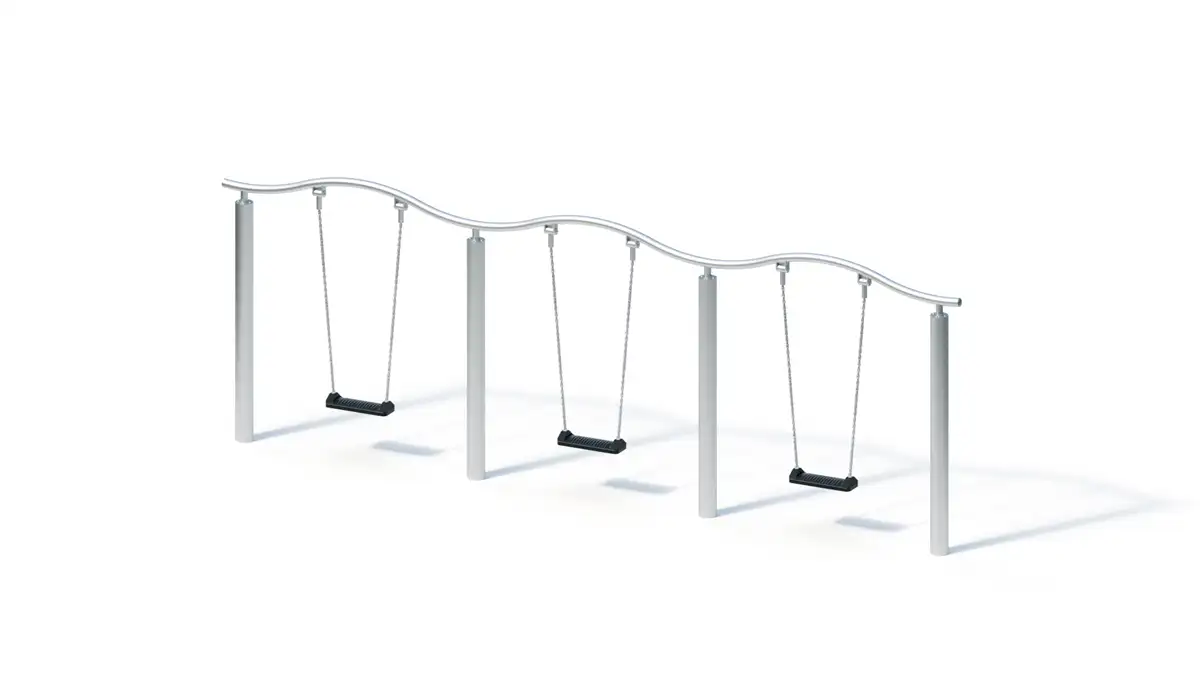 Le produit BALANÇOIRE TRIPLE (1,80m) - montants acier inoxydable du fabricant PRO URBA classé dans la catégorie Aménagement exterieur > Aires de jeux - équipements sportifs > Jeux divers est référencé dans la Matériauthèque digitale Materiaux.archi.