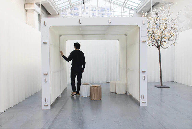 Le produit Cloisons non feu / DROP ROOM© / CARTON ALVÉOLAIRE ET NID D'ABEILLE HONEYCOMB de PROCEDES CHENEL est prescrit dans des projets de type : Habitat collectif Tertiaire Écoles Bâtiments publics .