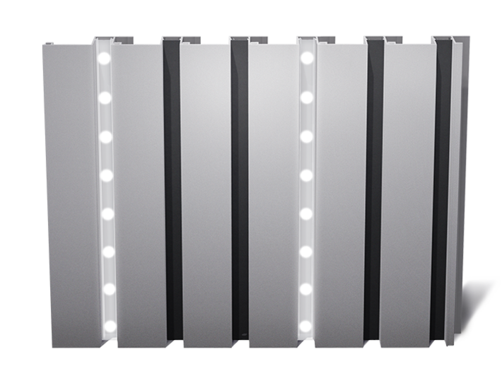 Découvrez une variété étendue de lames de bardage combinables entre elles, pour créer des effets de volume et de profondeur. Profitez de multiples options de personnalisation entre les lames : inserts en aluminium, joints noirs, ou encore éclairage LED.