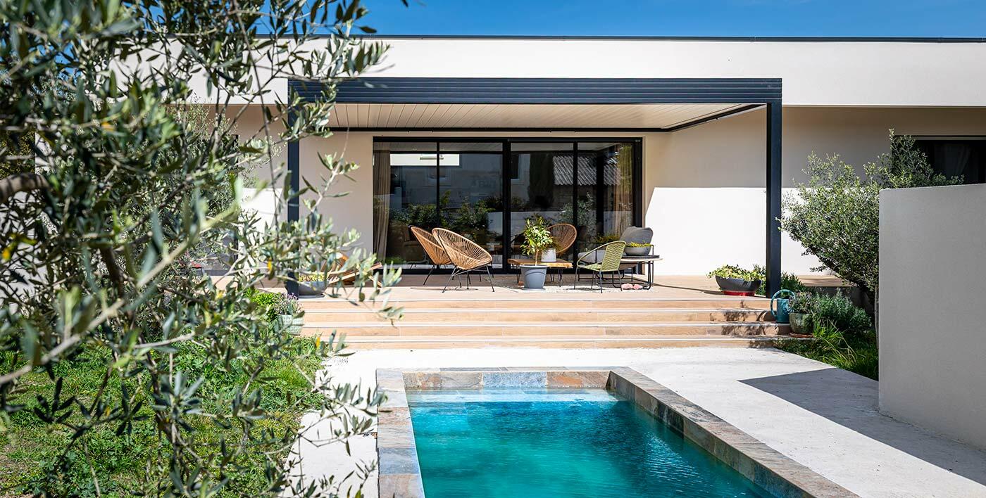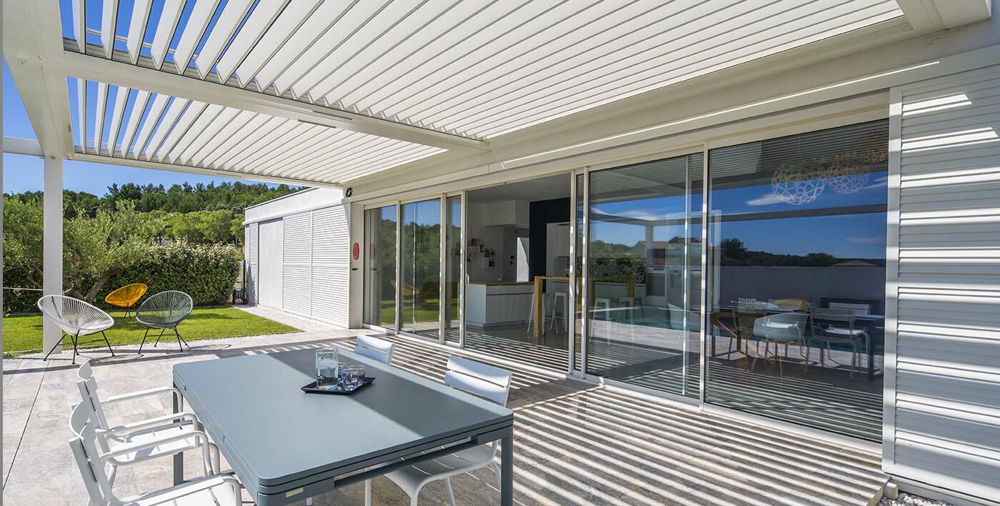 - Confort thermique : pergola à lames orientables évitant la surchauffe l'été et optimisant les apports solaires l’hiver