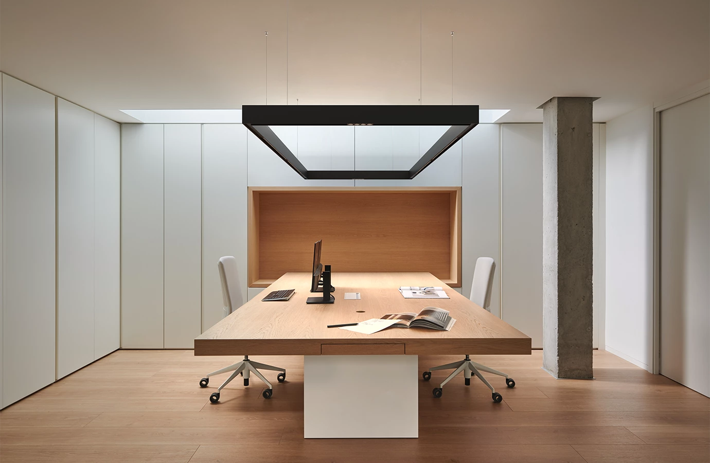 HYPRO ouvre un nouveau monde de structures et d’éclairages: Le modèle individuellement configurable HYPRO 40 traverse et contourne murs et plafonds, créant des lignes lumineuses continues en trois dimensions. Des éclairages généraux et d’accentuation peuvent être intégrés simultanément au profil HYBRID. Le profil HYPRO 40 se caractérise par la présence de modules à éblouissement réduit dans les plafonniers et les éléments linéaires. Les spots orientables, disponibles dans différentes tailles avec différents modèles de lentilles et intensités lumineuses, viennent compléter la famille de produits. Les options d’installation disponibles incluent des montages encastrés, en applique et en suspension ; les profils peuvent être installés dans les murs ou les plafonds, afin de tracer des lignes créatives dans la géométrie architecturale.