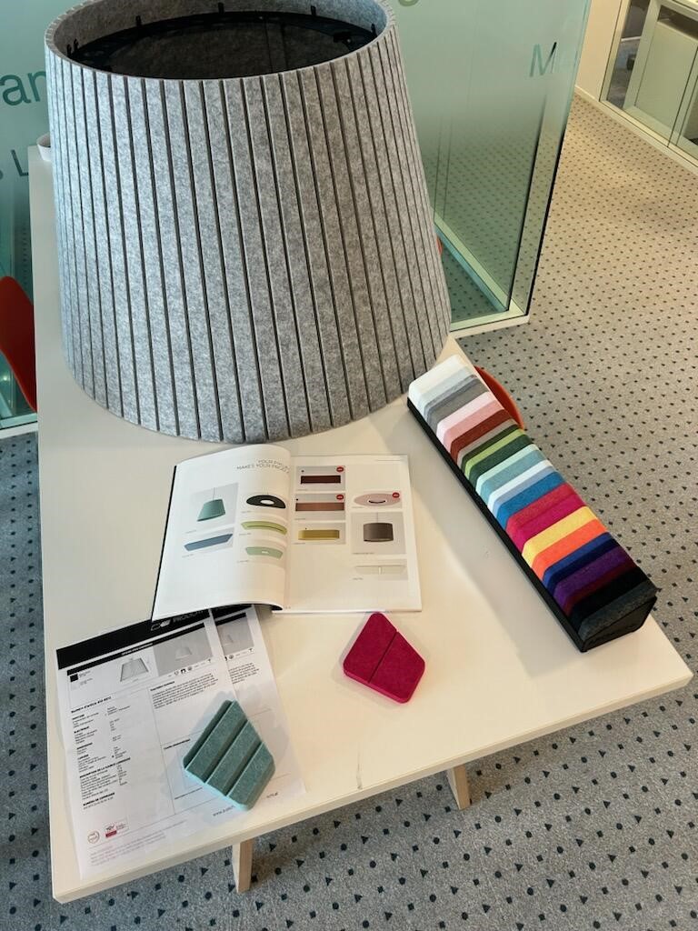 Le produit LUMINAIRES ACOUSTIQUES | PROLICHT du fabricant PROLICHT classé dans la catégorie Electricité - Eclairage > Appareils d'éclairage intérieur > Luminaire en suspension, et Lampes est référencé dans la Matériauthèque digitale Materiaux.archi.
