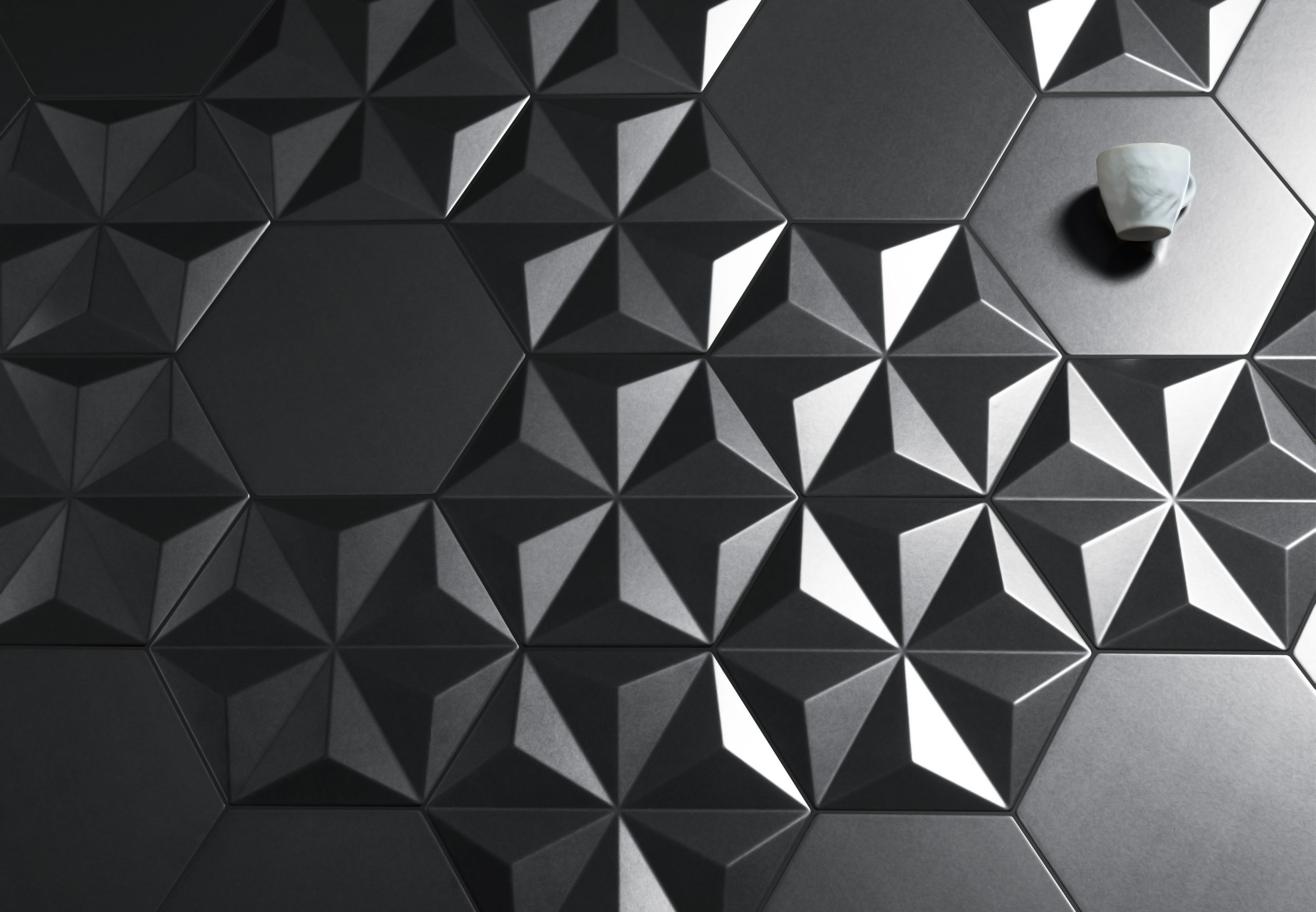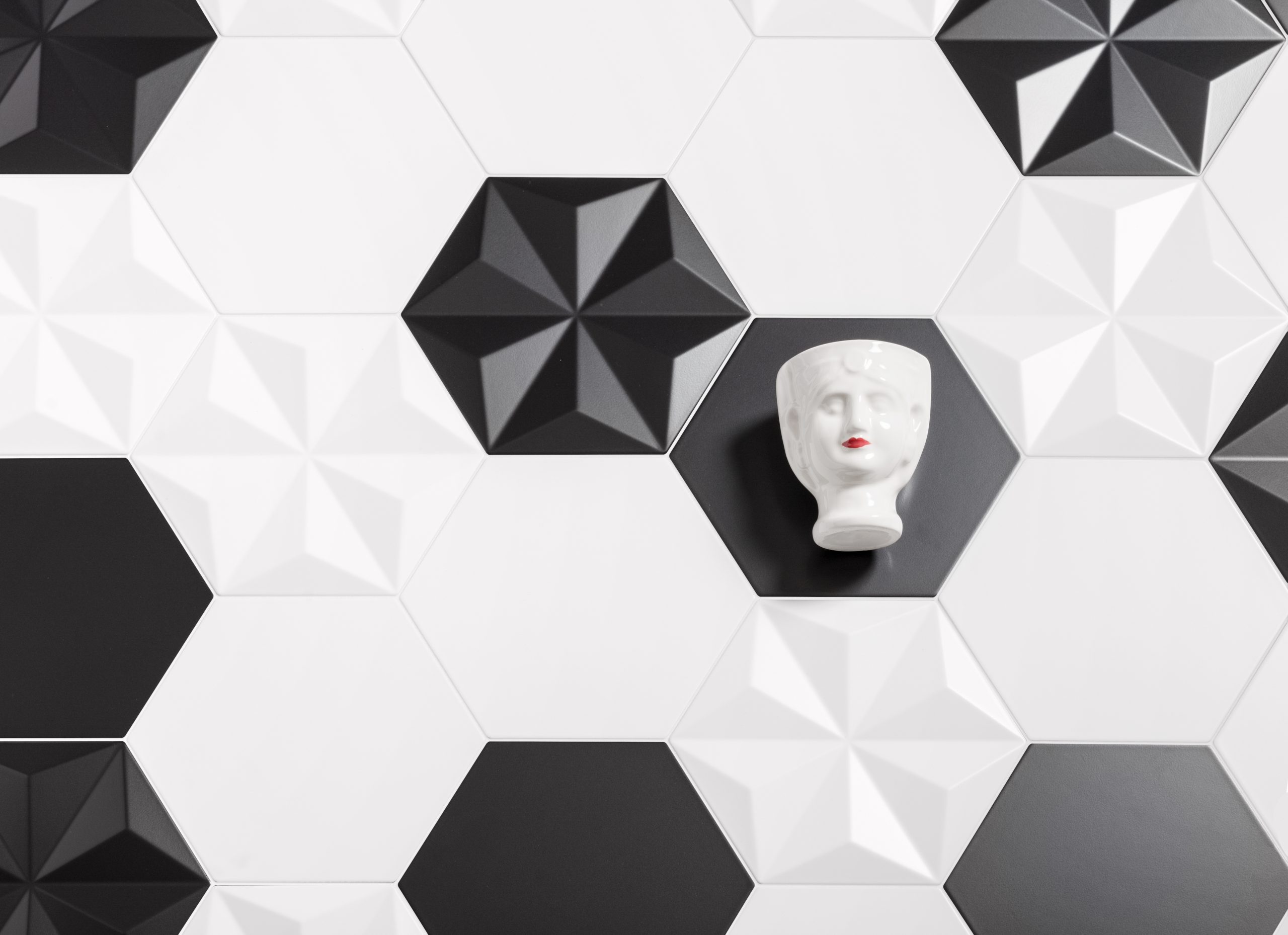 Avec sa forme hexagonale de 26,6x23cm, la collection Origami célèbre l'allure d'une surface tridimensionnelle avec grâce et élégance. Origami1, Origami2 et Origami3 jouent avec les volumes pour galvaniser les surfaces avec un rythme géométrique qui fait ressortir l'effet de clair-obscur. Origami1 présente un motif d'étoile en relief. Origami2 mélange les surfaces solides et unies des carreaux, maximisant les options de composition, tout comme Origami3, qui offre une surface à motifs vectoriels en relief dans trois versions différentes. Formes multiples réunies par le carreau de base uni, conçu pour transpercer tout en laissant libre cours à la créativité raffinée et à la fantaisie.