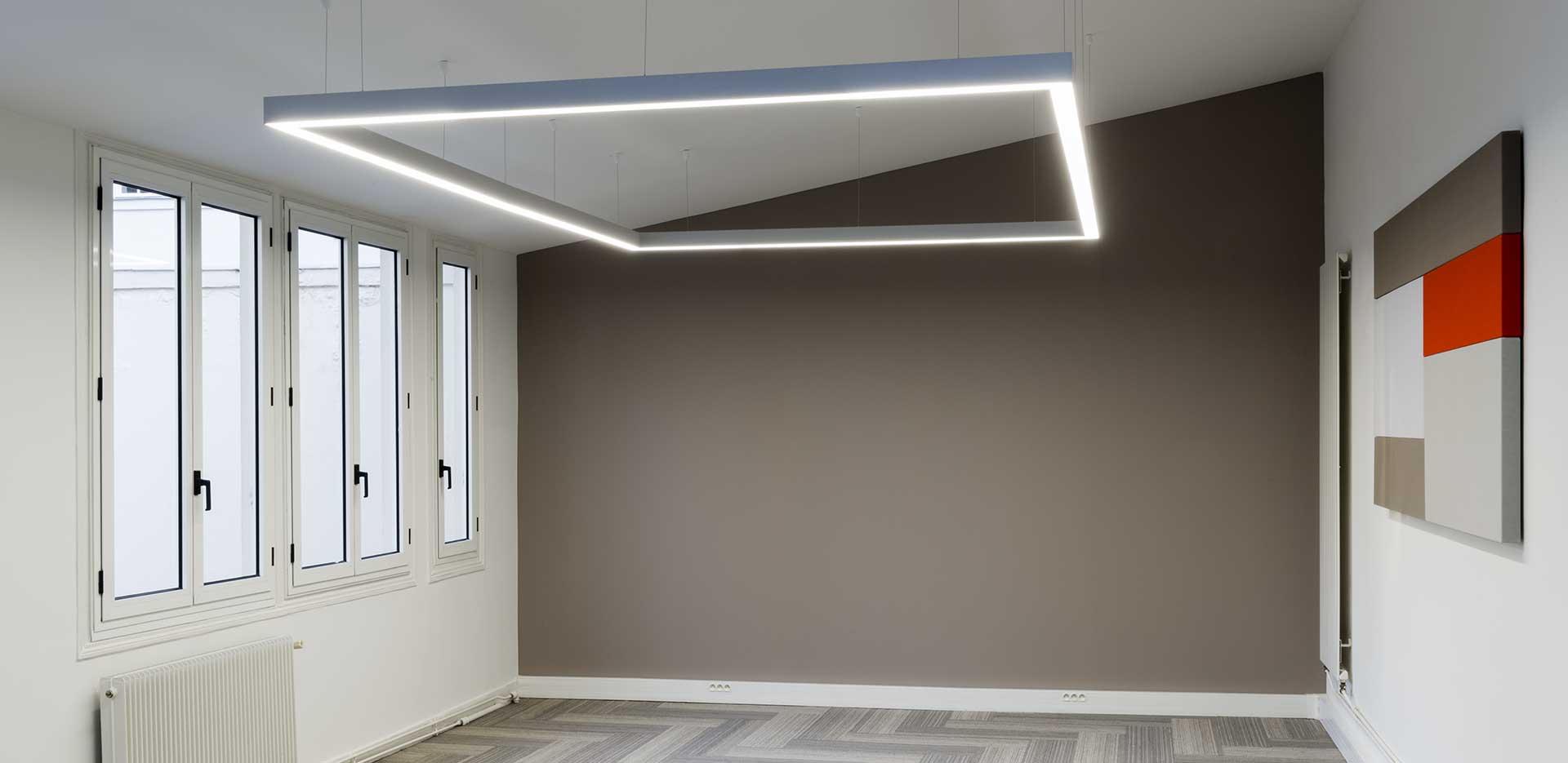 SPACELINE est un système d’éclairage modulaire LED, conçu aussi bien pour des montages en ligne que pour des implantations en modules individuels. Il se décline en une famille complète d’appareils à encastrer, suspensions, plafonniers et appliques murales. SPACELINE constitue une véritable solution intégrée pour structurer avec élégance les espaces architecturaux, qu’il s’agisse d’open-space, de circulations, de salles de réunions ou encore de zones d’accueil.