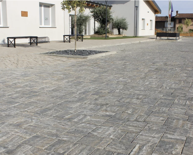 CASSIA est un bloc autobloquant multiformat composé de 5 éléments caractérisés par une surface à la texture irrégulière, rappelant la pierre fendue. Convient à toute utilisation prévue.