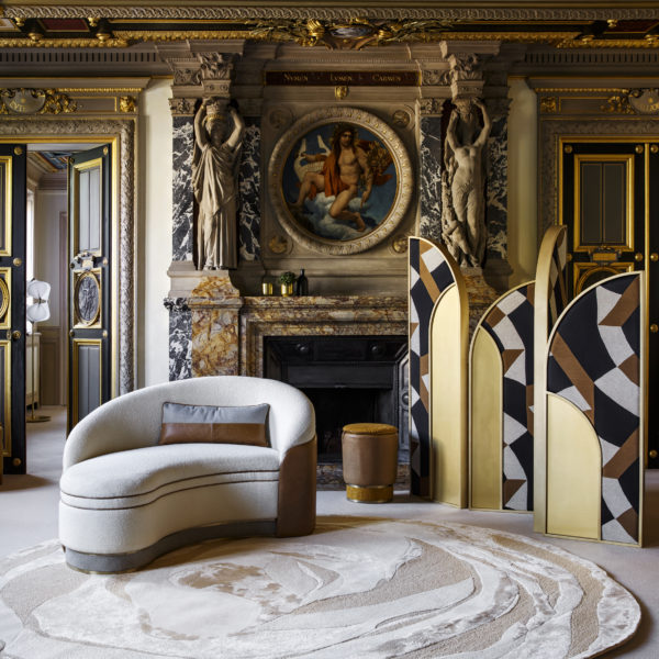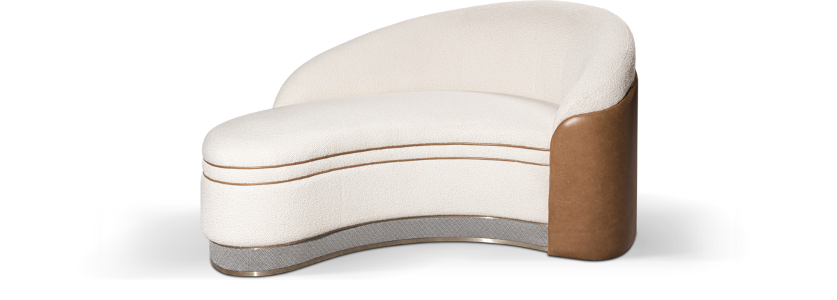 Le canapé Blancs Manteaux tient le haut de l'affiche. Son élégante silhouette glamour lui confère un statut de vedette. Par ses courbes enveloppantes, soulignées d'un double passepoil de cuir et d'un double ruban de laiton, et le maintien de son assise, le canapé Blancs Manteaux assume parfaitement son rôle dans les pièces de réception. Dessiné par Tristan Auer pour Red Edition.