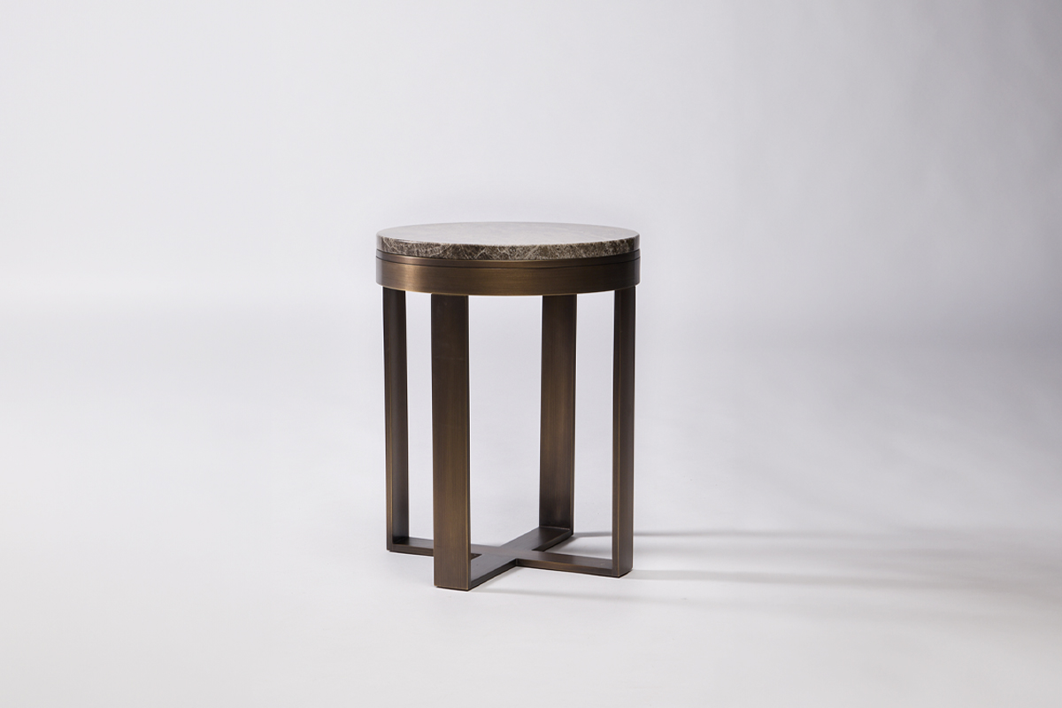 MINA est la quintessence du minimalisme sophistiqué. Cette table d’appoint incarne l’harmonie entre les lignes épurées et les matériaux nobles. Son piètement X en bronze, soutient avec élégance un plateau rond en marbre, révélant ainsi l’alliance parfaite entre tradition et modernité. MINA célèbre le savoir-faire artisanal et l’esthétique intemporelle.