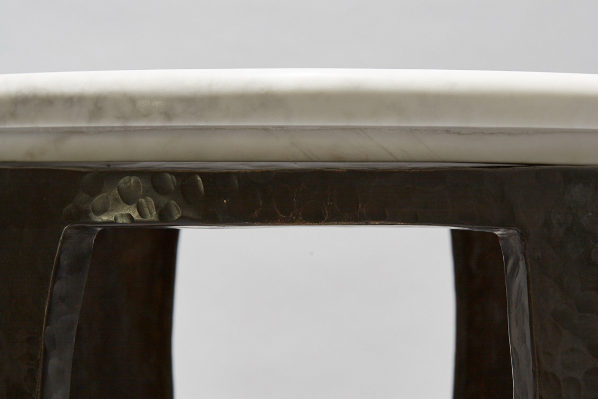 Table d’appoint DRUM, 2015 Plateau marbre Base en bronze martelé Ø40 x H45 cm