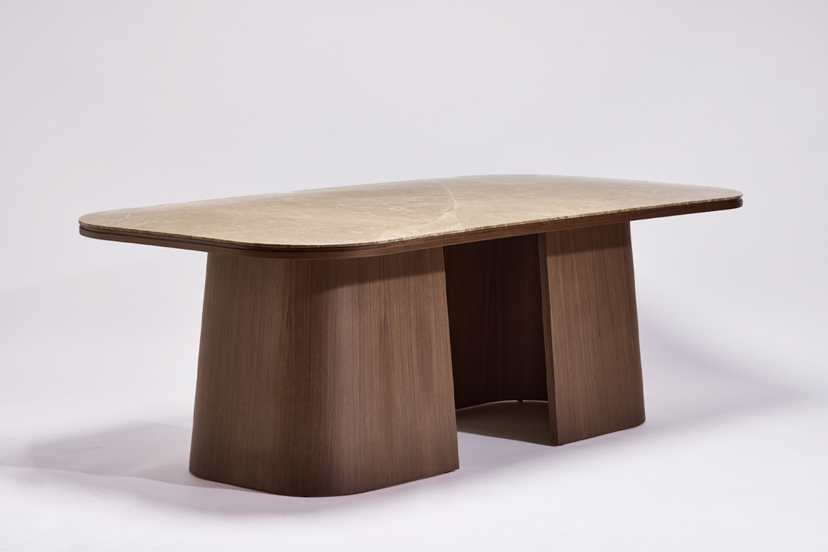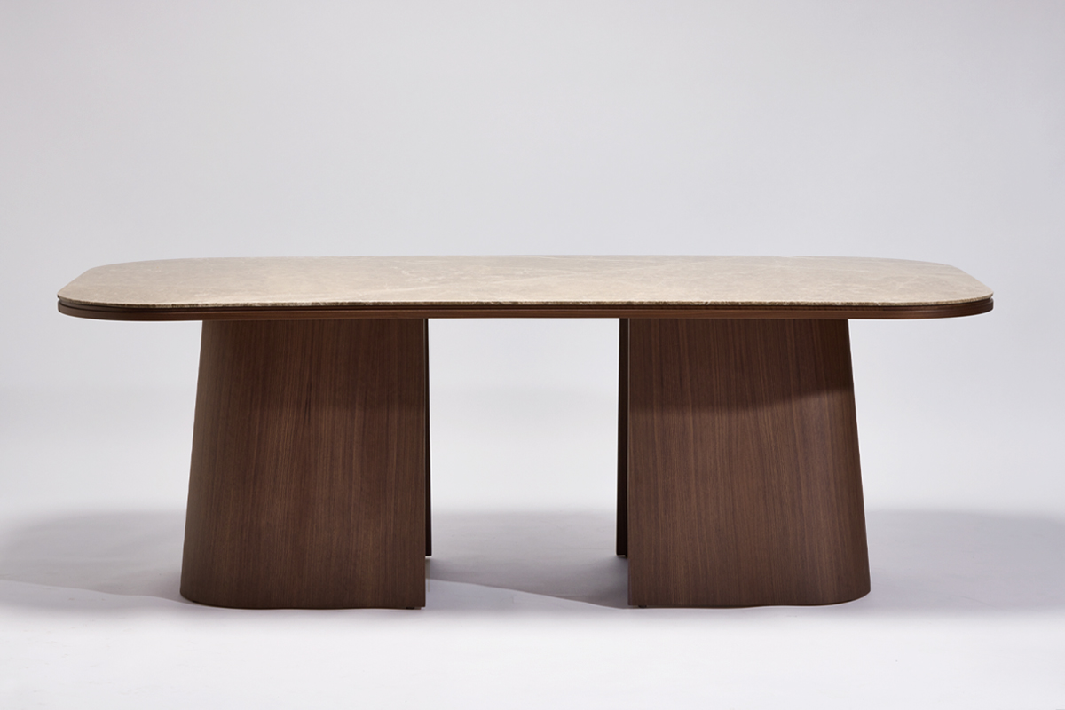 La table OOMA reflète la recherche permanente d’une ligne pure et le souci du detail de Reda Amalou. Cette pièce contrastée faite de marbre et de noyer parait imposante par ses proportions et par le choix des matériaux qui la composent. Pourtant, une certaine légereté se dégage de cette pièce. La finesse de son plateau, le détail de la tranche et la subtile courbe de son piétement offrent une finition tout en rondeur et délicatesse.