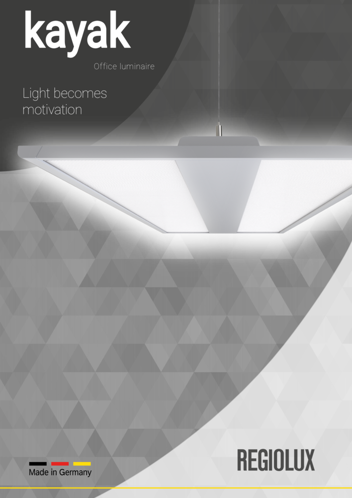 Le produit KAYAK – LA LUMIÈRE DEVIENT MOTIVATION du fabricant REGIOLUX classé dans la catégorie Electricité - Eclairage > Appareils d'éclairage intérieur > Luminaire en suspension, et Lampes est référencé dans la Matériauthèque digitale Materiaux.archi.