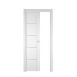 La porte coulissante à galandage Casoar apportera une touche de modernité à votre intérieur grâce à ses inserts verticaux et horizontaux aspect métal. Son système à galandage (non fourni) permet d'insérer la porte dans la cloison lorsque celle-ci est ouverte offrant ainsi un gain de place notamment des petites pièces.