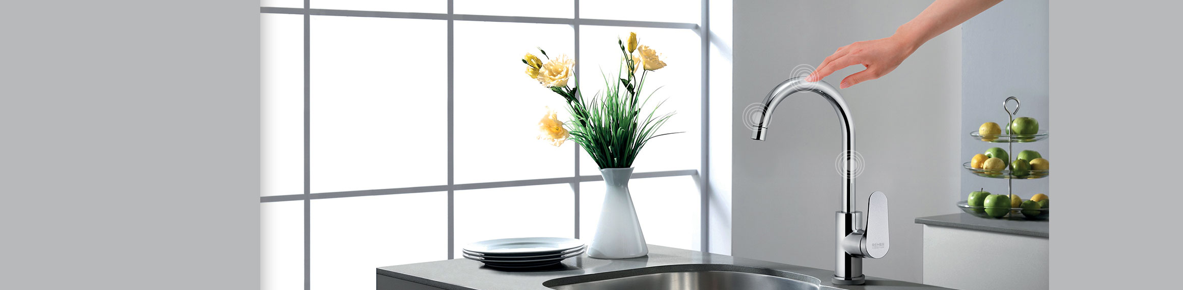 La technologie TOUCH-ME vous permet d’ouvrir et de fermer l’eau du robinet de la cuisine d’une simple pression.