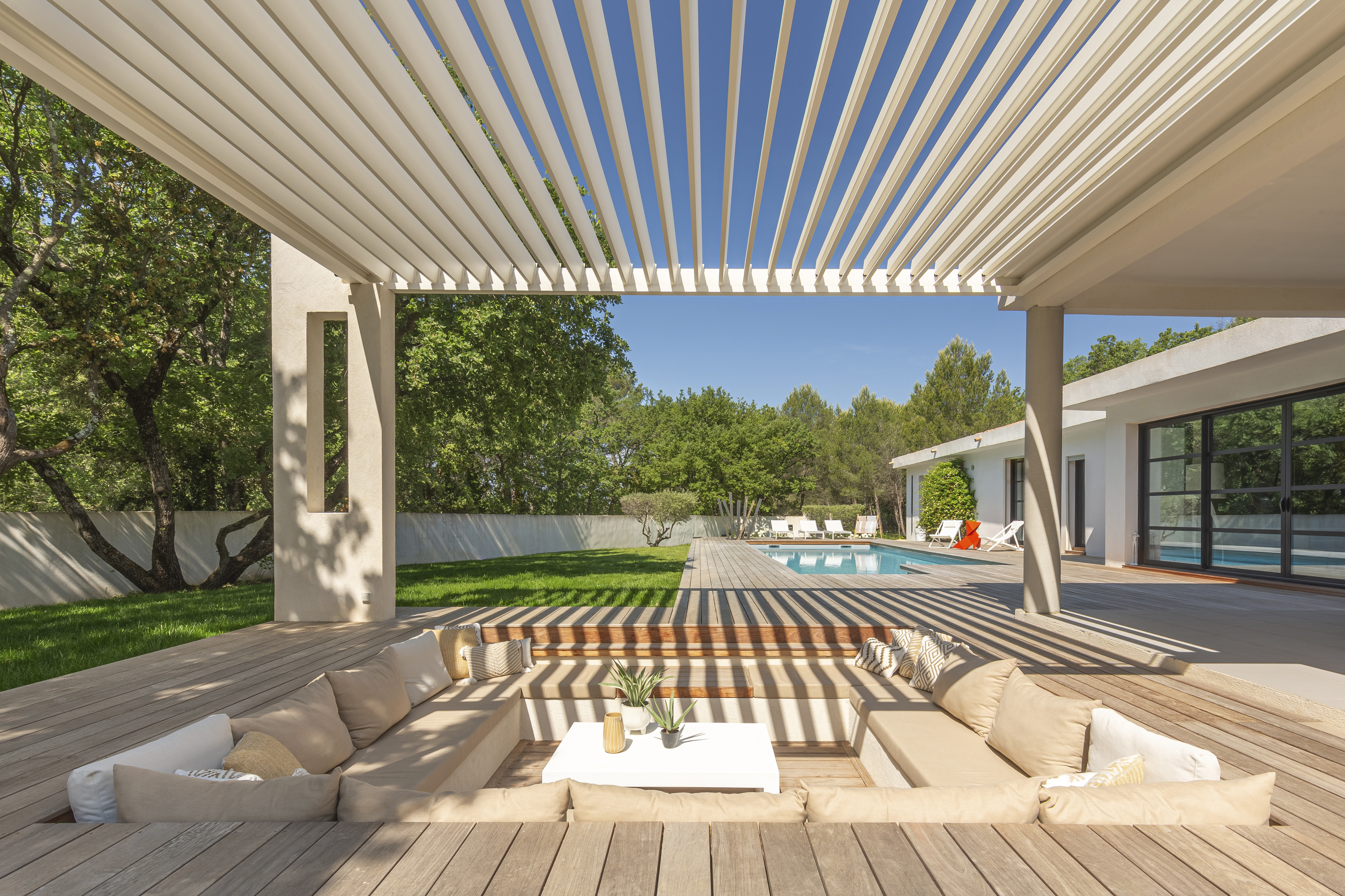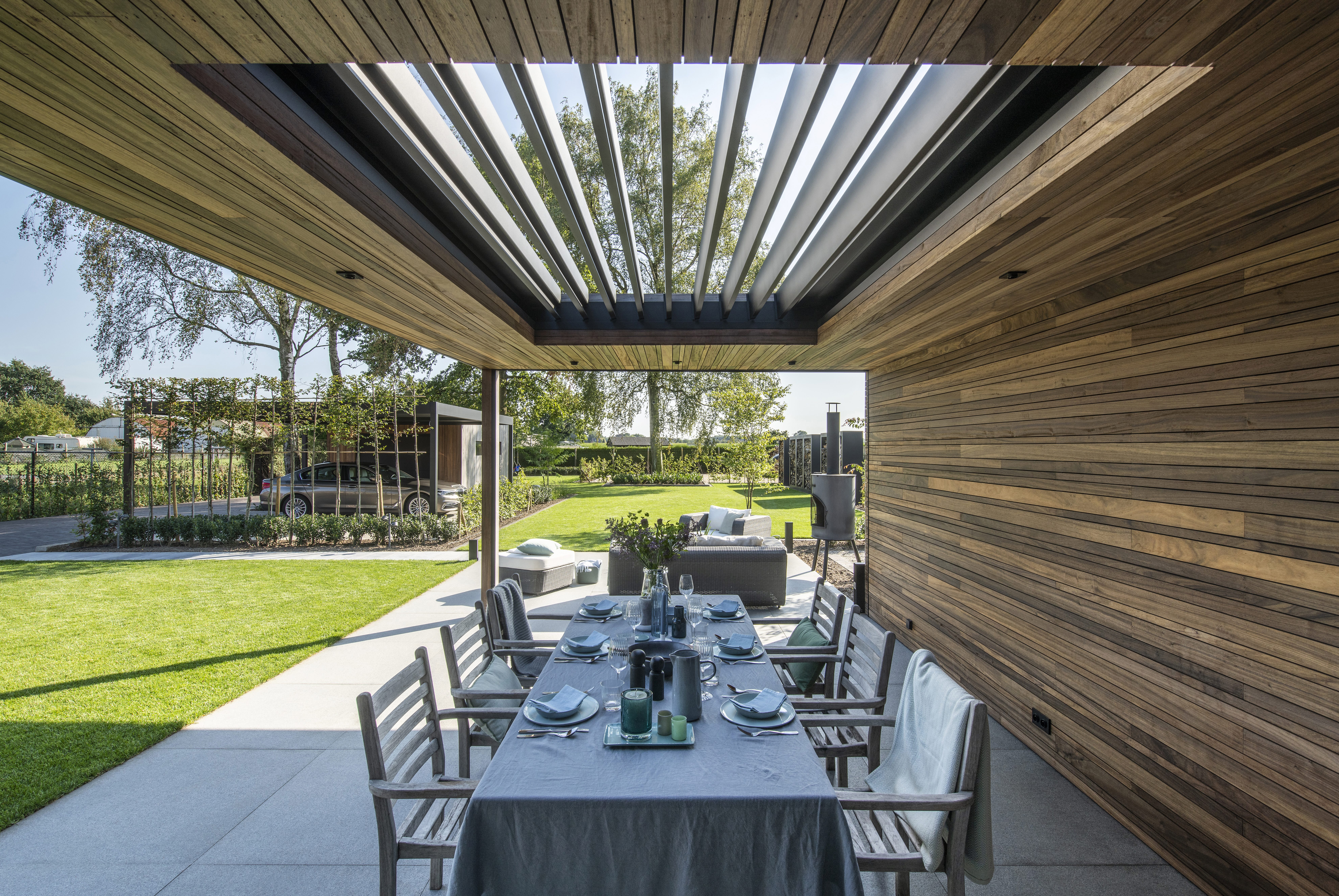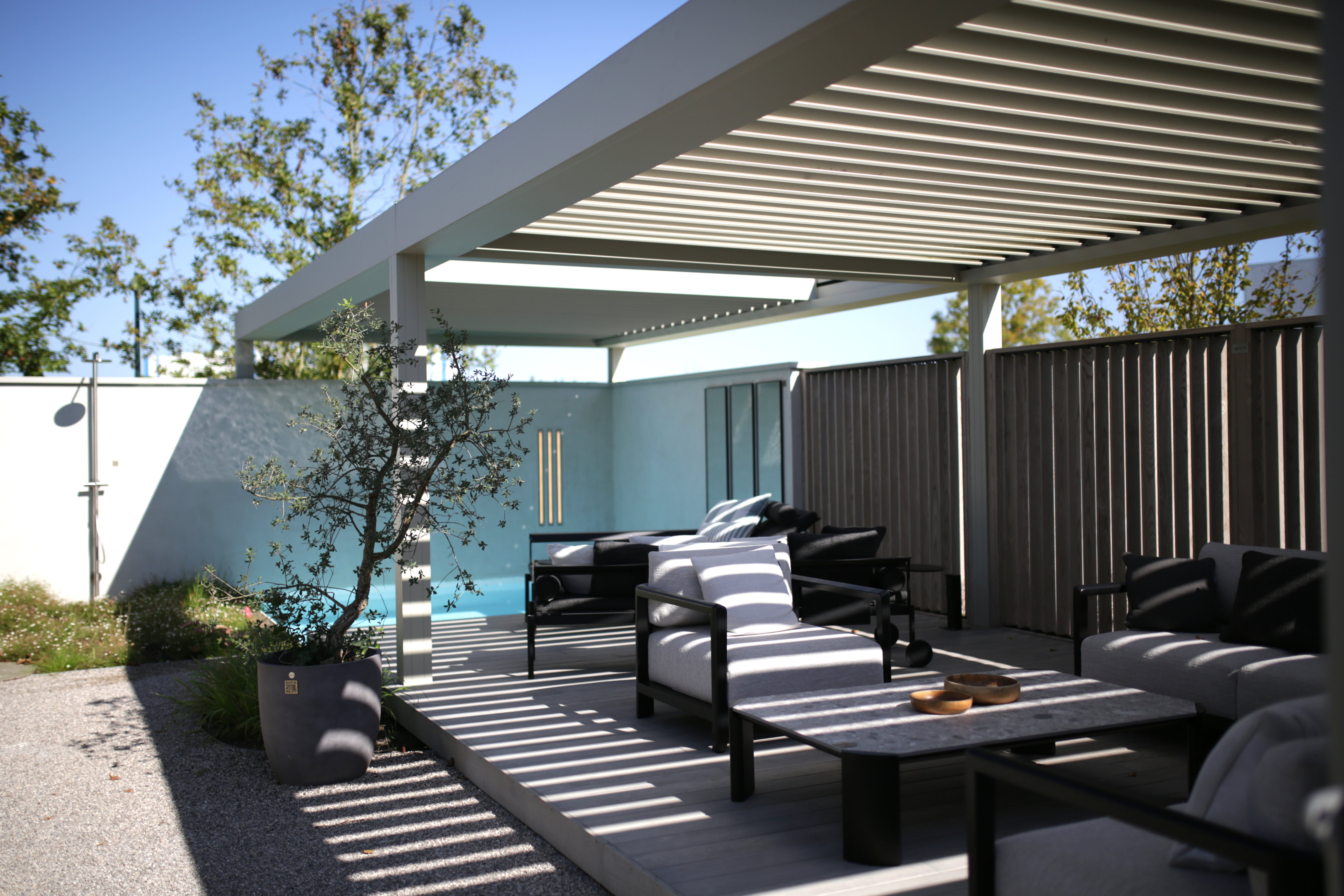 La pergola Aero est une pergola bioclimatique, avec une toiture à lames orientables qui s'intègre dans une structure fixe. Conçue pour fusionner avec l’architecture environnante, elle crée une harmonie visuelle idéale. La toiture s'intègre facilement dans des constructions neuves et existantes.