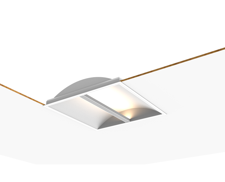 Encastré à éclairage indirect via son réflecteur qui diffuse 100% de la lumière et garantit ainsi une lumière douce, sans éblouissement. Luminaire conçu pour favoriser un UGR19 Encastré tertiaire équipé d'un module LED linéaire Couleur : Blanc IP 20, IK 07 Larg. 598mm x Long. 598mm x Haut. 110mm Flux restitué 2708lm Conso. système 34.1W Efficacité lumineuse produit complet 79.4lm/W LM80 L80F10 > 50000h (Ta25°C) Diffuseur PMMA Indirect/Symétrique PMMA, Corps en Aluminium IRC >80 Garantie 5 ans Empreinte carbone 3.06gCO2/h Indice de réparabilité 9,7