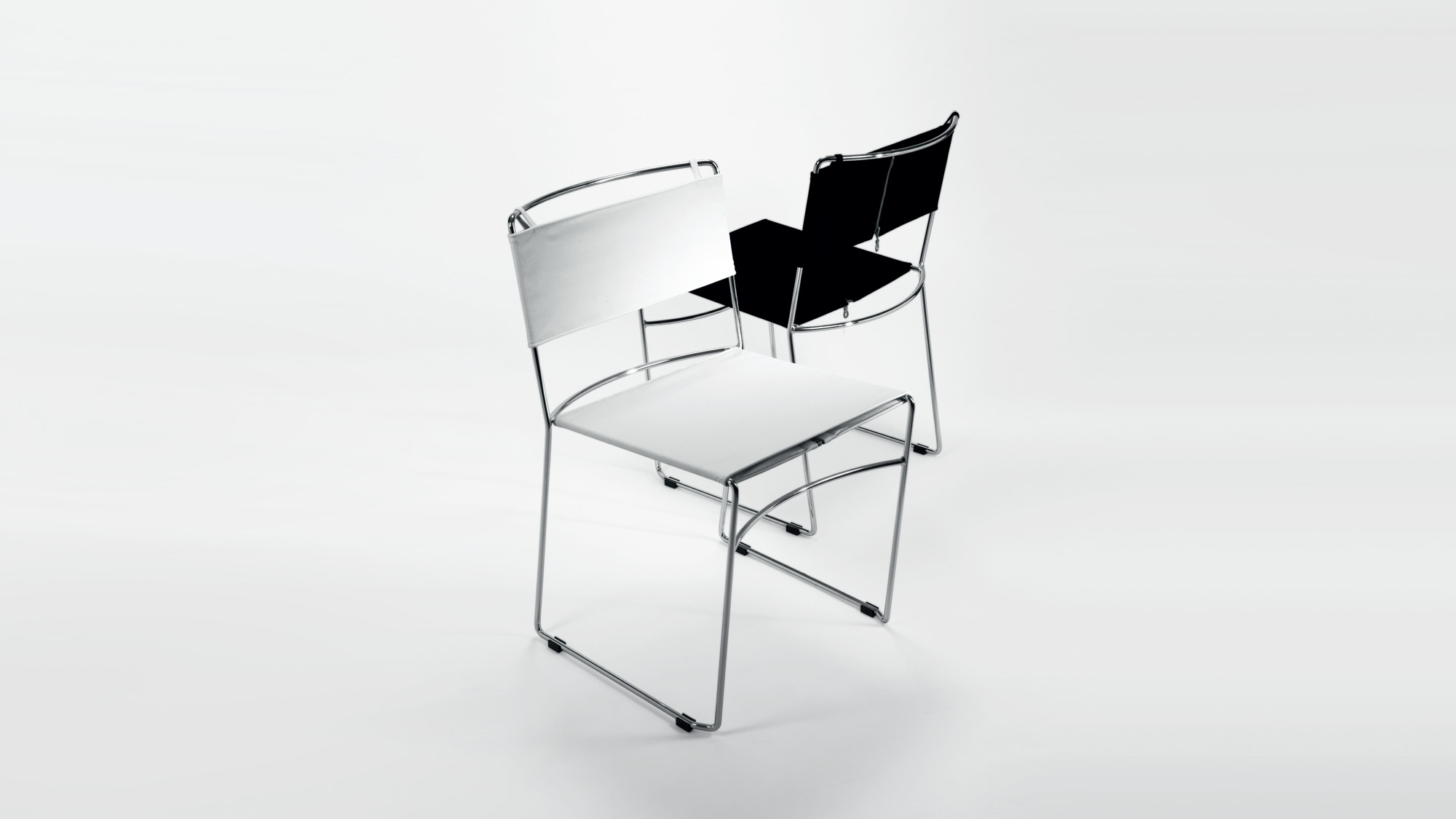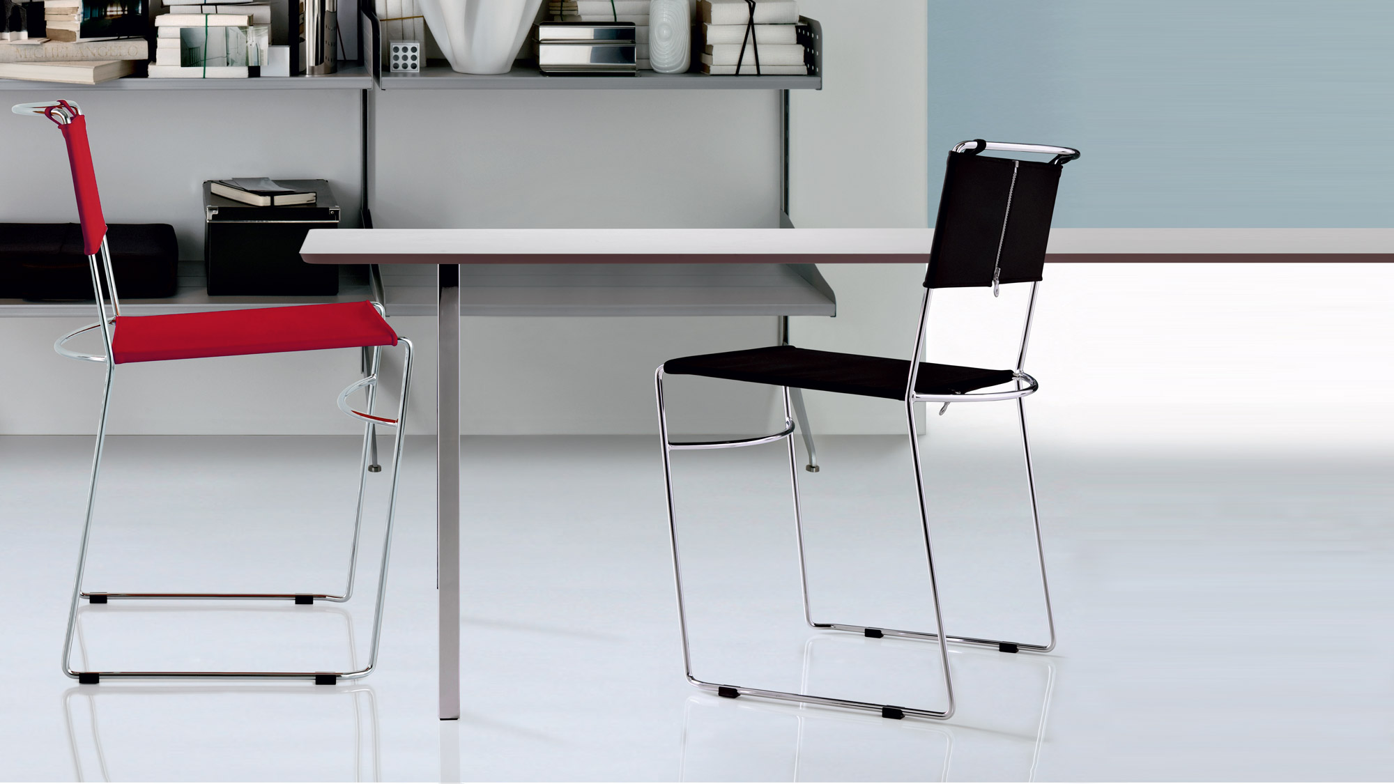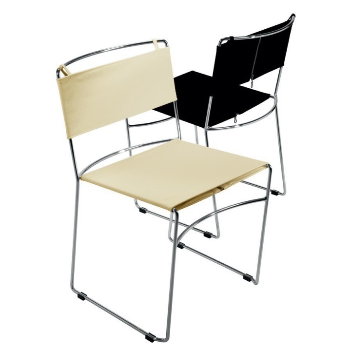 Designed by Enzo Mari in 1974 and awarded the Compasso d'Oro in 1979, it still impresses with the minimalist elegance of its steel rod structure covered with removable fabric.