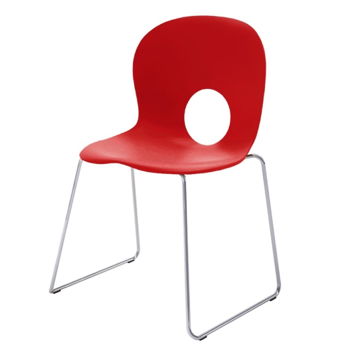 A Rexite icon, unmistakable with its soft lines and perfectly circular hole in the back, this version with sled frame is perfect for conference rooms and the home office.