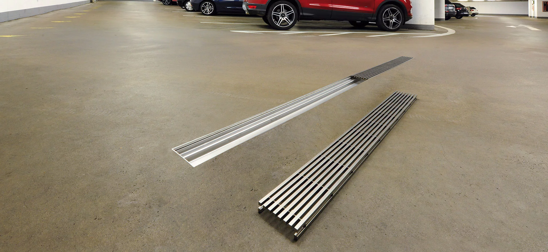 Les jours de fortes pluies ou neiges, les parkings et les passages souterrains sont davantage exposés à l’humidité en raison de leur forte fréquentation. L’eau peut pénétrer dans les espaces couverts par les rampes d’accès ou y être apportée par les véhicules et les piétons. En fonction de la durée et de l’intensité de ce genre de conditions météorologiques, de l’eau peut s’accumuler même dans les zones les plus reculées des parkings couverts ou souterrains. Il est impératif de la collecter pour ensuite l’évacuer de manière contrôlée ou lui permettre de s’évaporer. Cela va non seulement protéger la structure du bâtiment, mais aussi assurer la sécurité des piétons confrontés sinon au risque de se mouiller les pieds et de glisser. Vous trouverez, dans cette rubrique, les solutions que nous avons développées afin de répondre aux besoins de ce type de cas de figure.