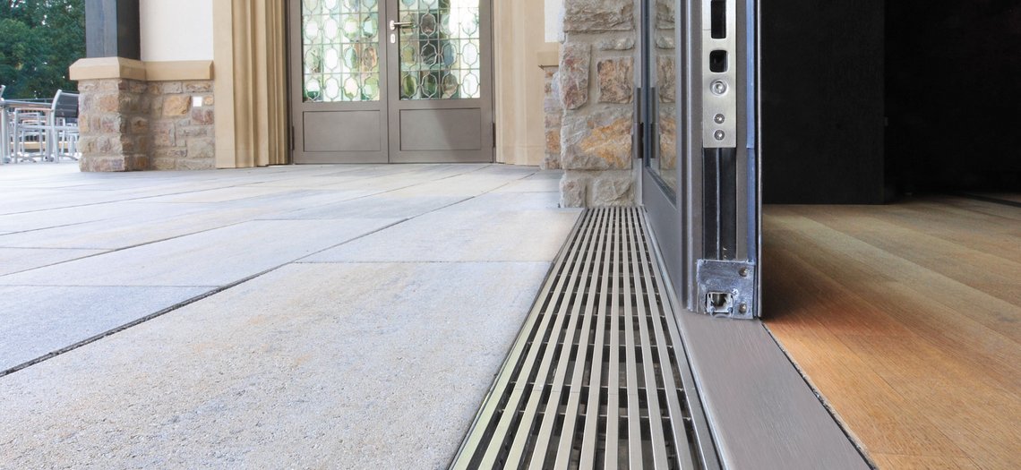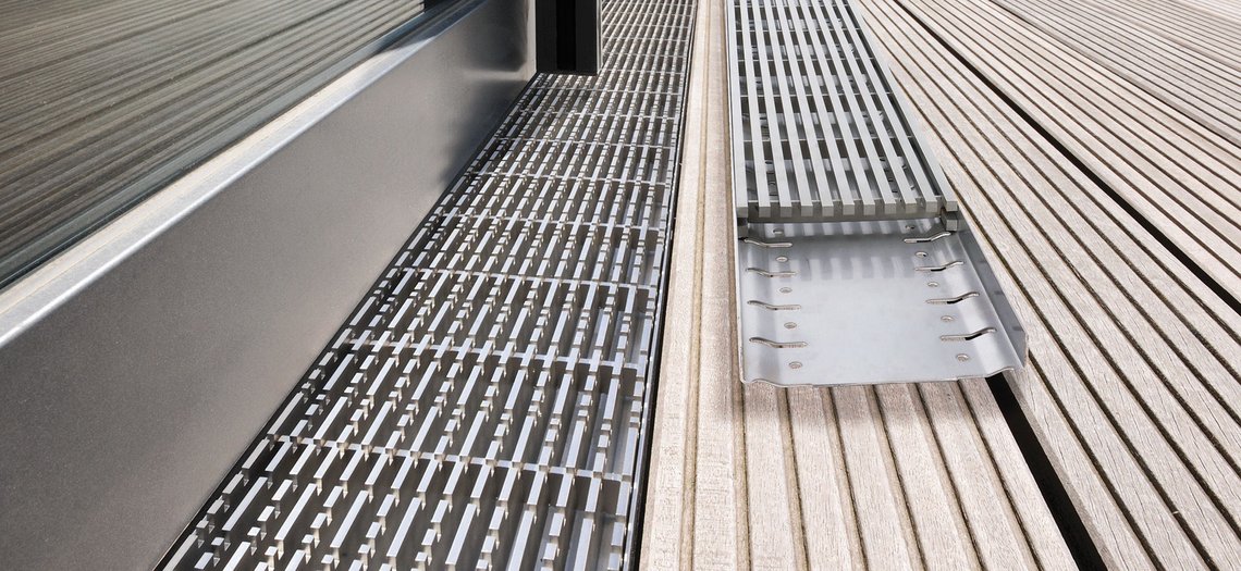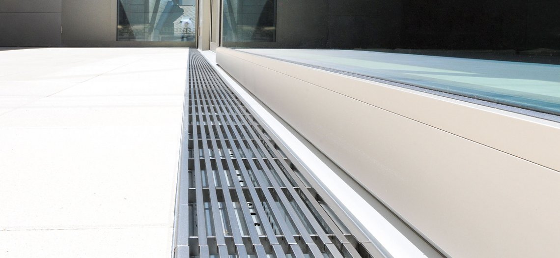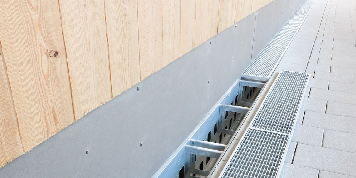 On ne vous apprendra rien en vous disant que les précipitations s’accumulent en grande quantité sur les toits et autres surfaces extérieures non couvertes, et qu’il est essentiel d’y prévoir des solutions adaptées pour y assurer une bonne évacuation. Il ne faut toutefois pas oublier que des volumes considérables d’eau de pluie s’écoulent aussi directement le long des façades ou à proximité immédiate. Il est, par conséquent, fondamental de monter des solutions de drainage et d’évacuation à tous les niveaux d’un bâtiment : toits, balcons, avancées et façades. C’est précisément dans la zone de transition entre le sol et la façade extérieure que de l’eau stagnante peut s’accumuler et exercer une pression. Le bâti s’en trouve menacé par des dommages dus à l’humidité. Il existe aussi un risque d’infiltration d’eau de pluie par les portes d’entrée et autres ouvertures de plus en plus souvent adaptées aux personnes à mobilité réduite et donc sans seuil. Nos solutions pour l’évacuation d’eau le long des façades vous permettent de bien vous protéger. Nous vous proposons des caniveaux et des grilles pour tous les types de situations de montage. Nous sommes également en mesure de les fabriquer sur mesure. Nos produits garantissent non seulement la collecte et l’évacuation des eaux de pluie, mais aussi parfois une ventilation continue afin que les soubassements puissent sécher. C’est ce qu’offre notre caniveau respirant pour façade « Stabile Air » : une solution spécialement développée pour les façades isolées et les façades en bois, capable, en outre, de s’équiper d’un porte-à-faux pour s’encastrer sous les embrasures. Dans la présente rubrique, nous avons réuni, rien que pour vous, tous nos caniveaux destinés à l’évacuation des eaux le long des façades.