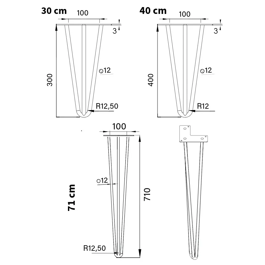 Le produit Pied en épingle renforcé à 3 tiges pour table - Le Costaud de RIPATON est composé de : Acier .
