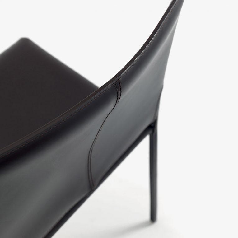 Chaise avec structure en métal entièrement recouverte de cuir ou de tissu cousu main.