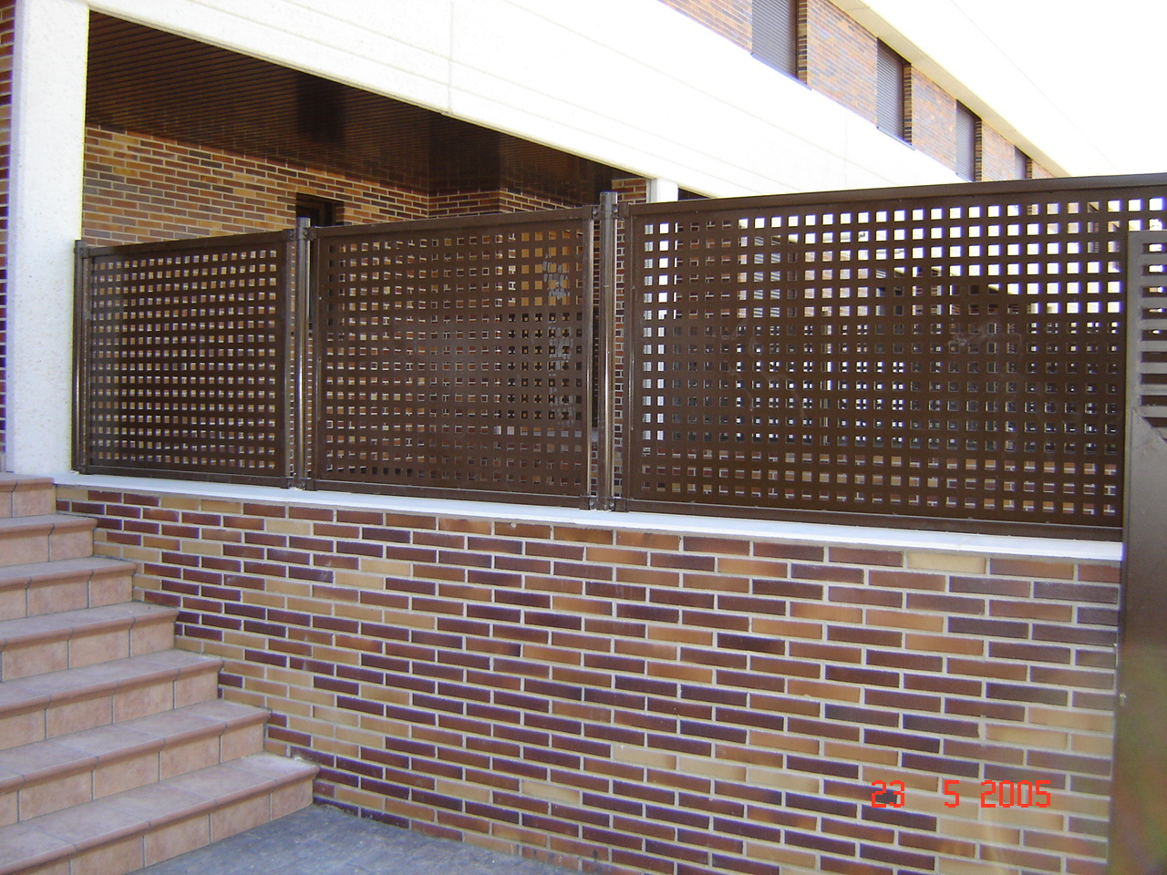 Barreaudage en profilés 40x40x1,5mm (horizontaux) et 35x35x1,5mm (verticaux) en tôle perforée en forme carrés de 30x30mm et 1,5mm d’épaisseur. Assemblage rapide sans soudures