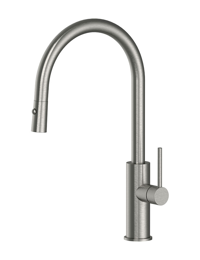 Mitigeur d'évier monocommande, avec bec orientable et douchette extractible, aérateur anti-calcaire M22x1, inox 316L brossé.