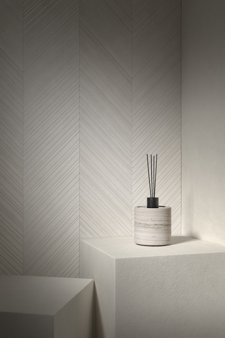 L’éclairage met considérablement en valeur la beauté de Chevron : le motif texturé crée un effet d’ombre élégant lorsqu’il est associé à un éclairage adapté.