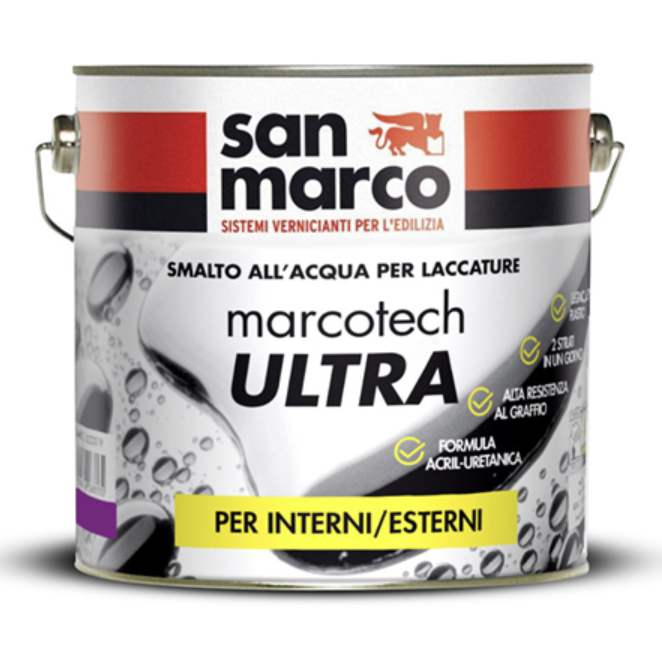 MARCOTECH ULTRA AU40 est une peinture-émail à l’eau pour des finitions laquées semi-brillantes ultra-résistantes, conçue pour donner une nouvelle vie aux portes et aux fenêtres. Sa formule spéciale garantit aux supports traités une protection particulière contre les agents atmosphériques et une grande résistance aux rayures, aux chocs et à l’abrasion.
