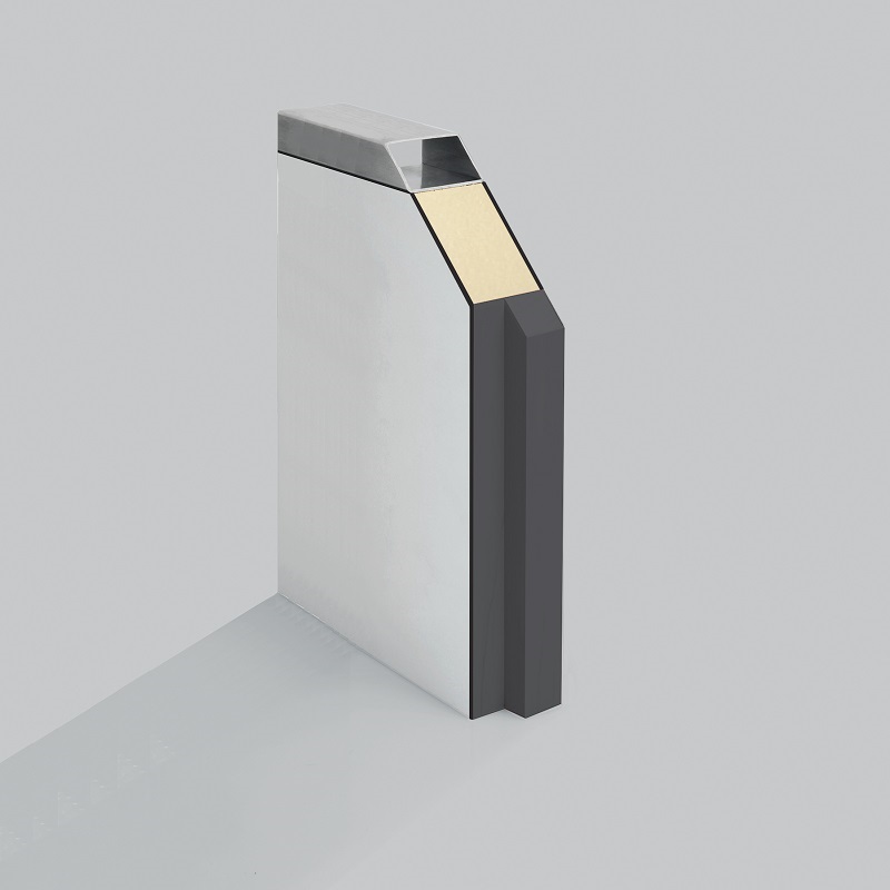3 paumelles invisibles par porte, en inox, invisibles des deux côtés quand la porte est fermée.