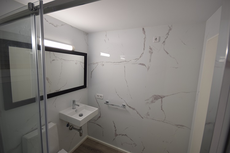 Faire le choix de Prestiwall, c’est opter pour une installation simple et rapide : les panneaux sont directement collés aux murs existants et sont assemblés les uns aux autres par un joint en silicone.
