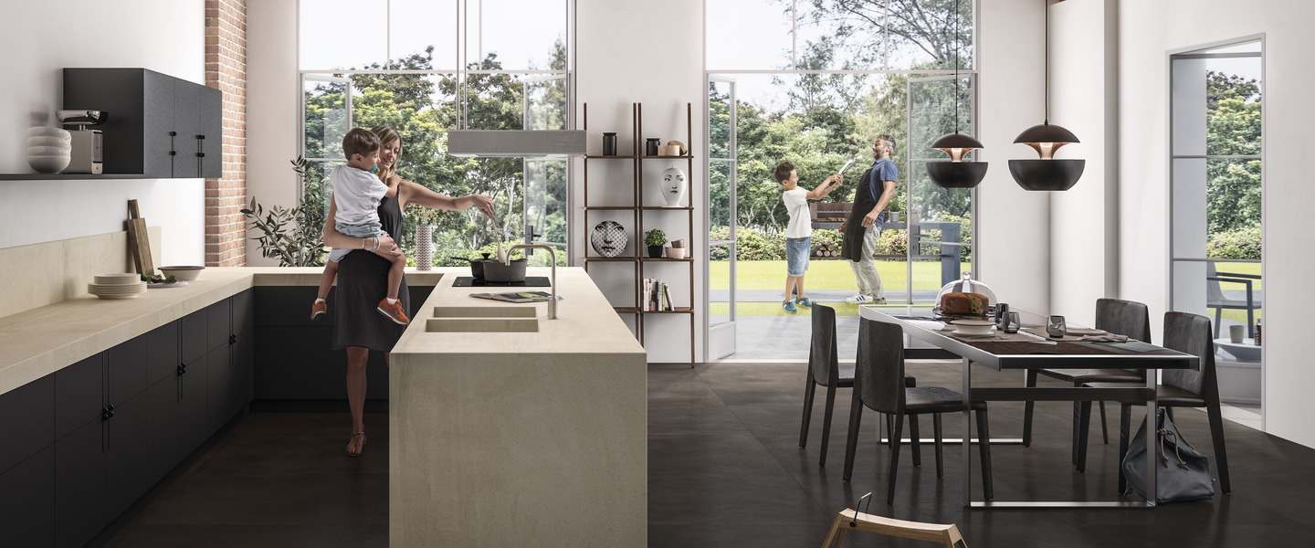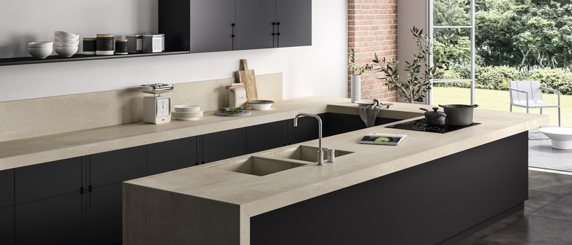 Le Basalt Cream s'inspire lui aussi des roches volcaniques. Sa tonalité, plus délicate, confère à la cuisine un aspect plus vaste et plus serein.