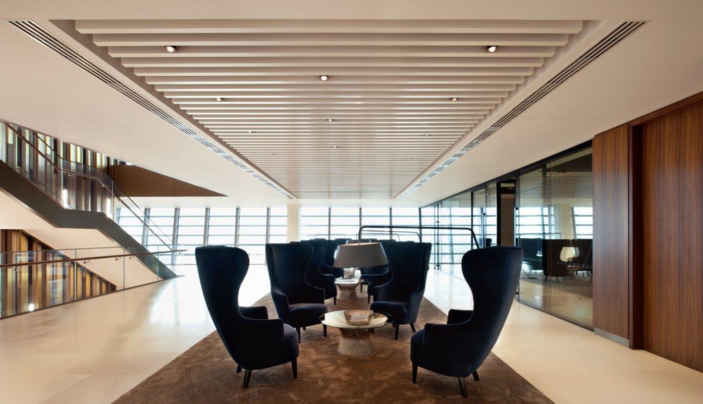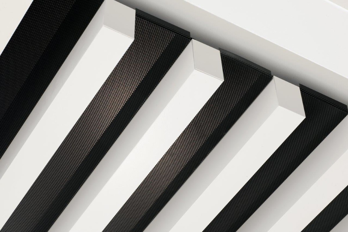 Le système en aluminium s'adapte aux espaces intérieurs nécessitant une esthétique haut de gamme distincte des plafonds à dalles suspendues ou à cellules ouvertes. Le SAS740 propose également une option d'éclairage intégré.