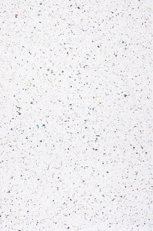 Le Terrazzo 023 avec ses fragments apparents, met en lumière l’origine et l’histoire des déchets recyclés. Chaque panneau est une pièce singulière, racontant visuellement sa propre histoire. Il est composé à 100 % de déchets plastiques en polystyrène. Sa base blanche provient du recyclage de cafetières, micro-ondes, grilles-pain, portes de réfrigérateurs, etc.