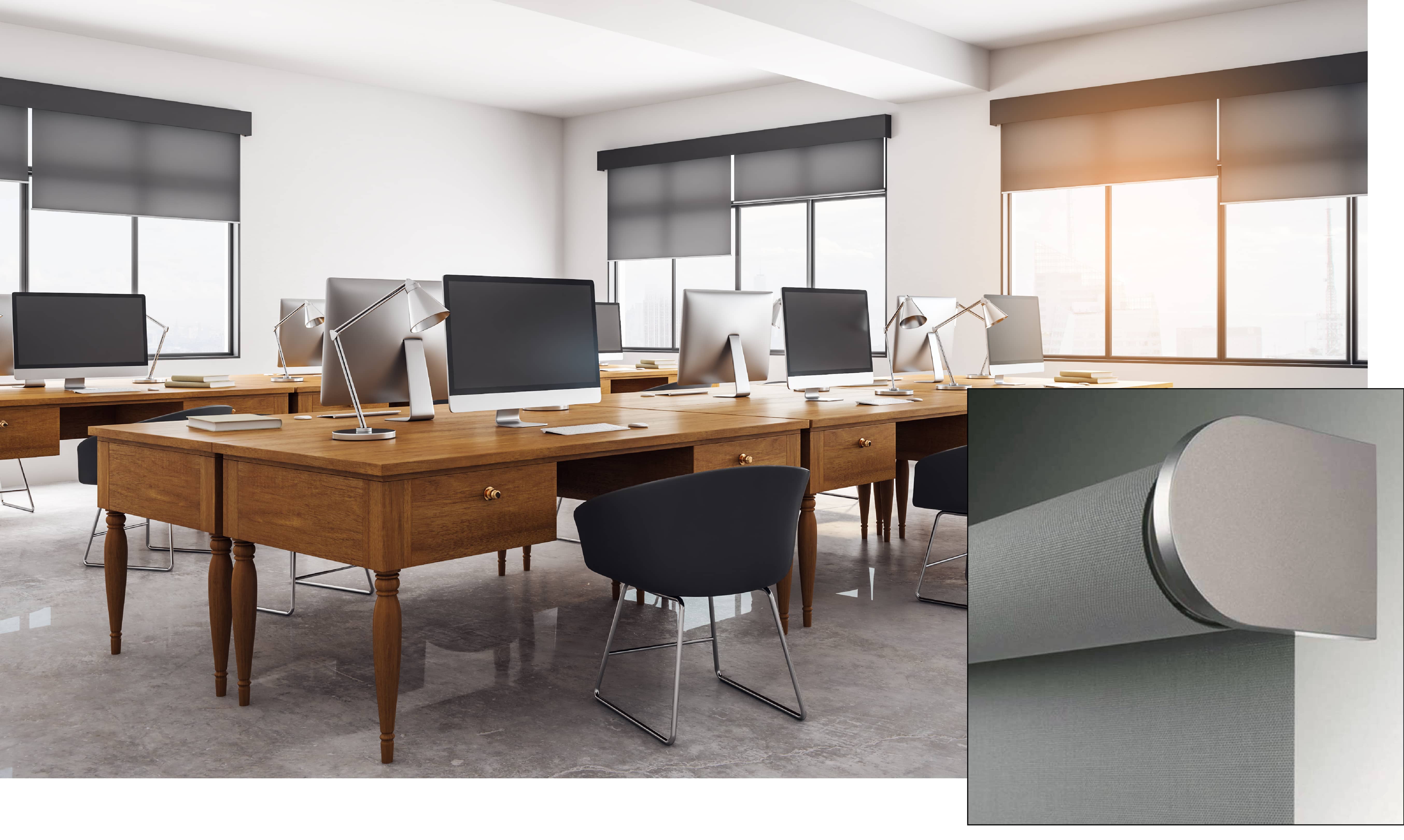 The main task of the new Eclipse is to reduce the brightness in a workspace or in a room with video projection to make the contents that are projected clearly and legible. But these shades go further, the fabric of which they are made improves the acoustics of the environment. It is in fact a sound-absorbing fabric capable of significantly reducing the reverberation time.