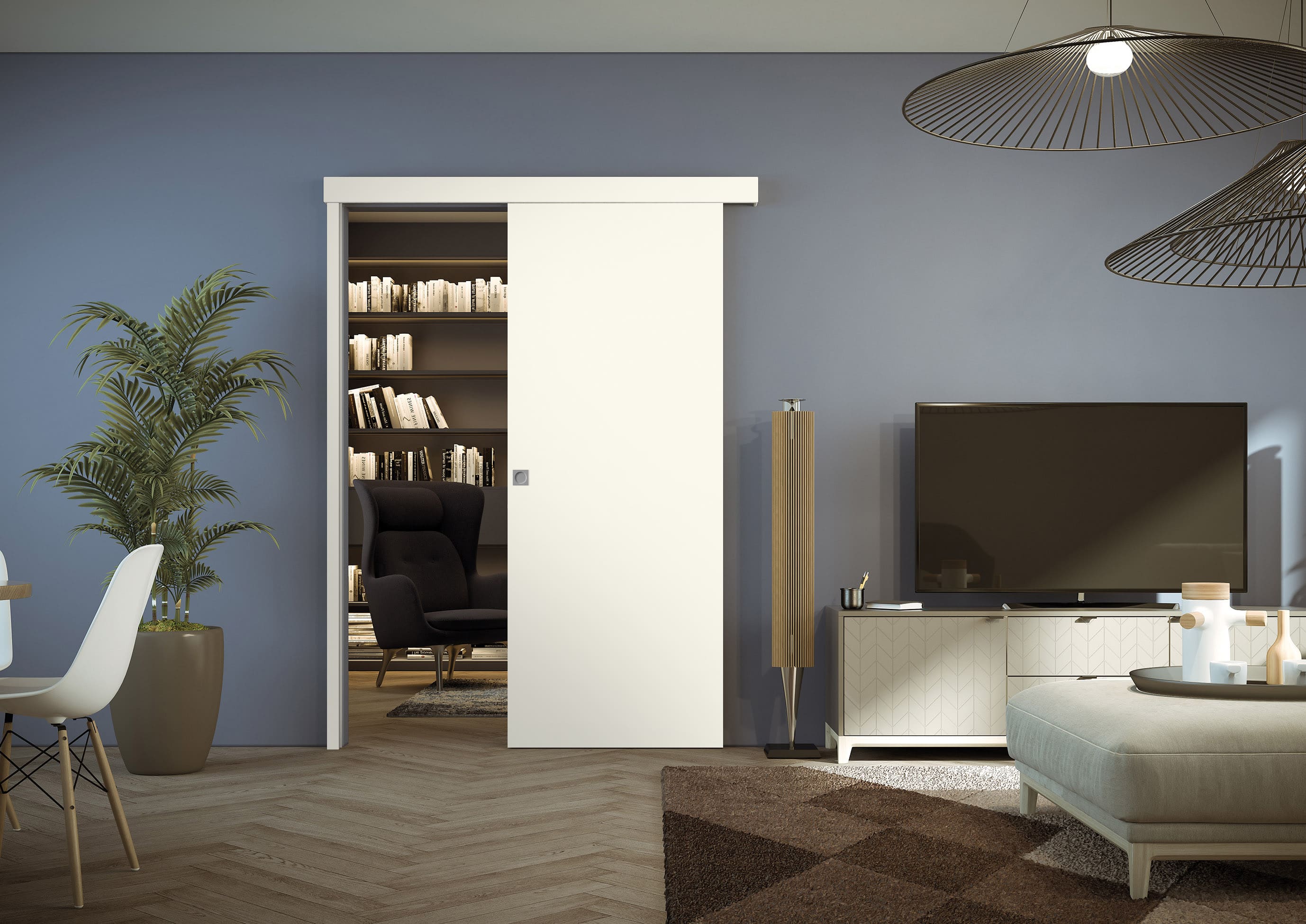 La porte coulissante extérieure Xterna de Scrigno allie robustesse et légèreté, guidant la lumière et le son entre les pièces sans nécessiter de travaux structurels. Elle sépare les pièces sans épaisseur importante et est facile à installer. Robuste et polyvalente, elle s'adapte aux différents styles d'ameublement et devient un élément esthétique et fonctionnel.