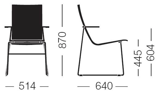En combinant la coque HAMMOK avec une structure également légère mais plus rigide, avec des bras, et en réduisant l'angle d'inclinaison, on obtient une chaise avec un large spectre d'applications dans l'Hôtellerie (Restaurants, Cafétérias,...) comme dans des salles à manger des particuliers.