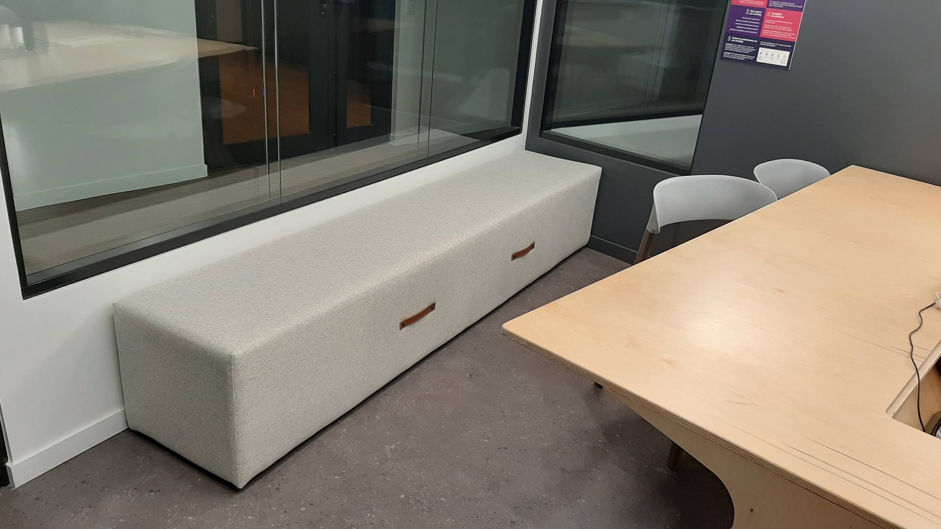 Les banquettes en Feutre Camira ou tissu Amara sont sur https://silencio-acoustique.com/produit/banquette_cat2/