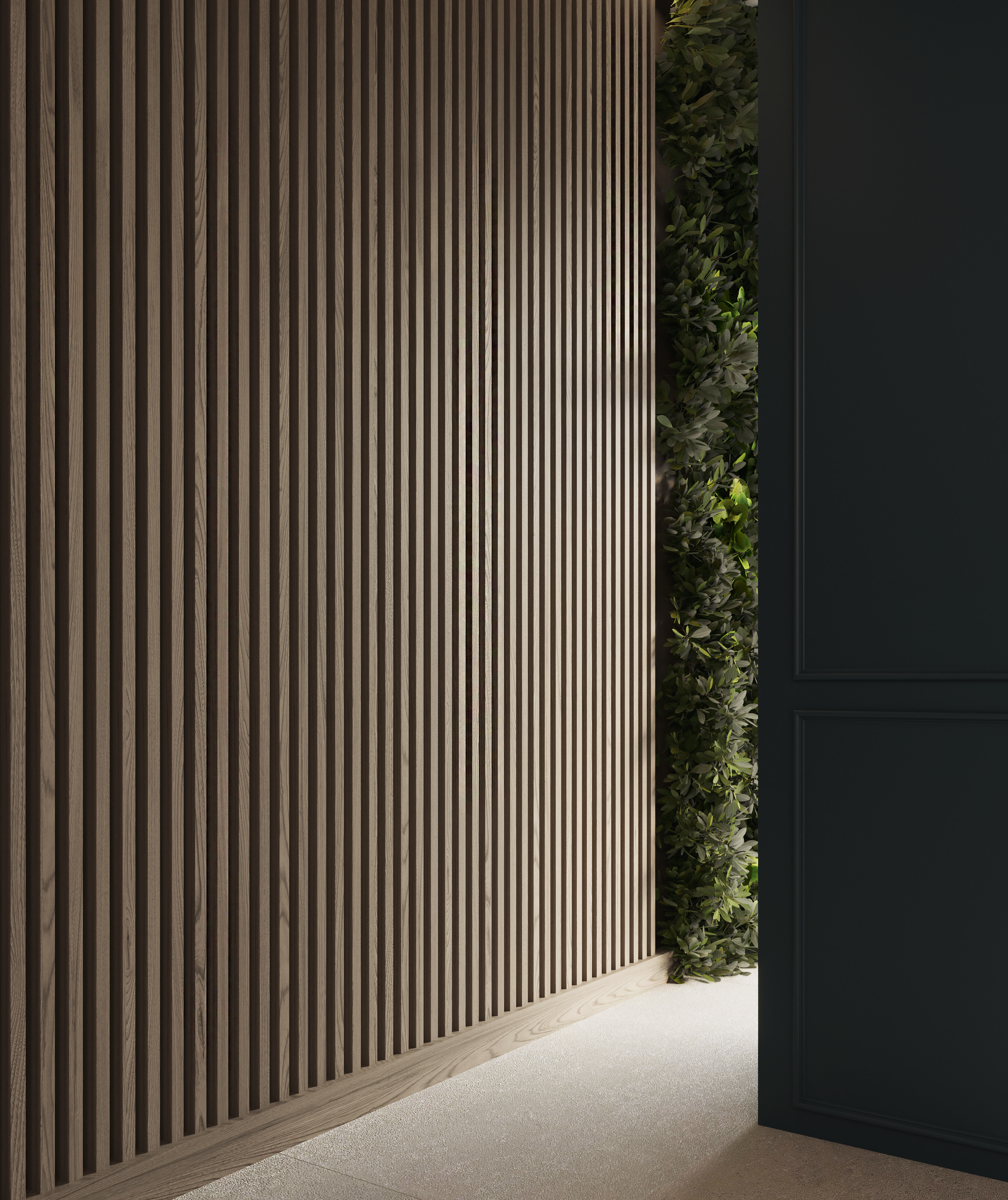 ORA SLAT Mural est composé à 100% de fibres de polyester, dont 60% proviennent de plastiques recyclés. Ainsi, non seulement vous optez pour une solution élégante, mais vous contribuez également à la durabilité de notre planète. Les lattes ORA SLAT Mural créent un équilibre parfait entre esthétique et performance.