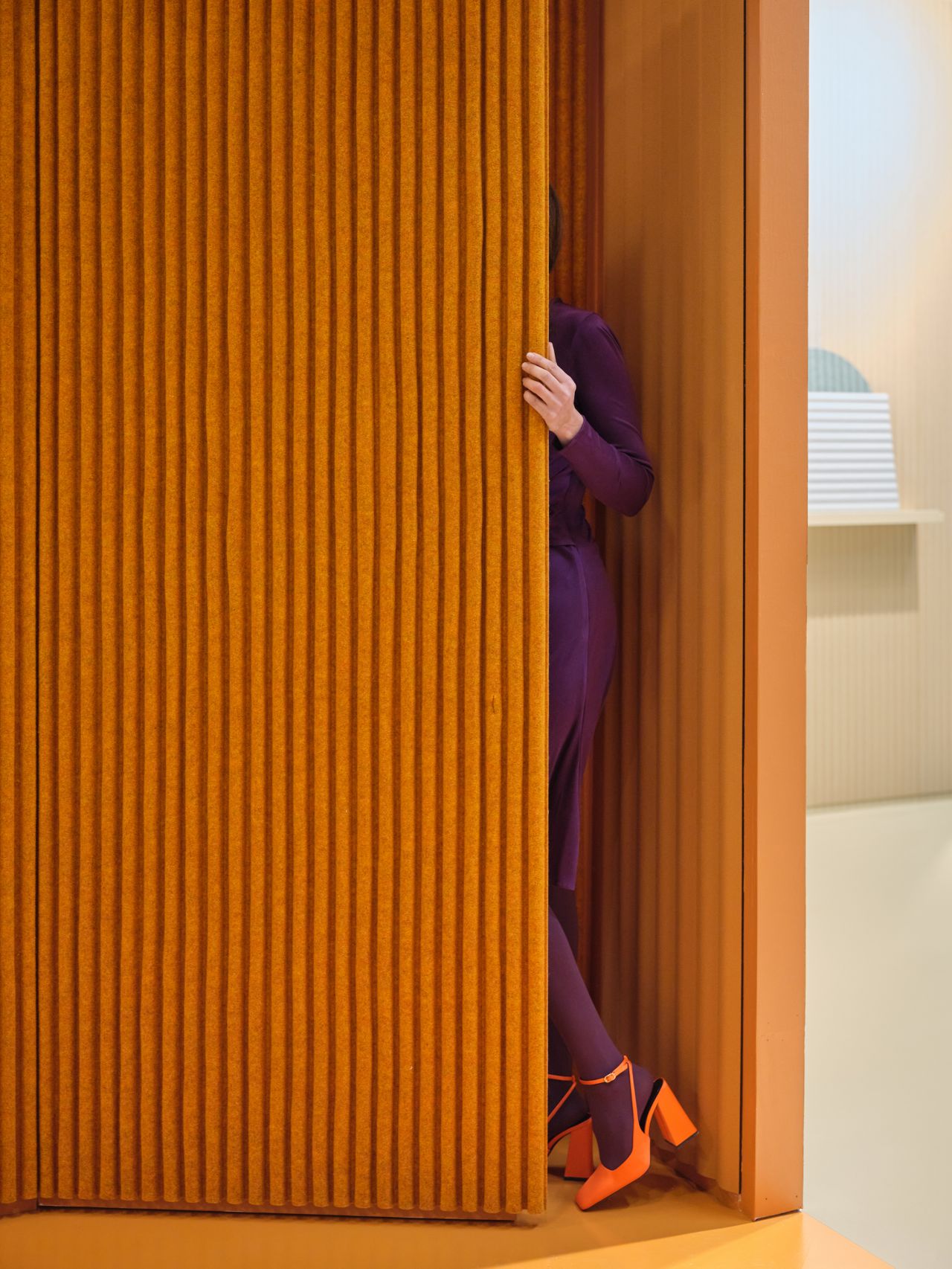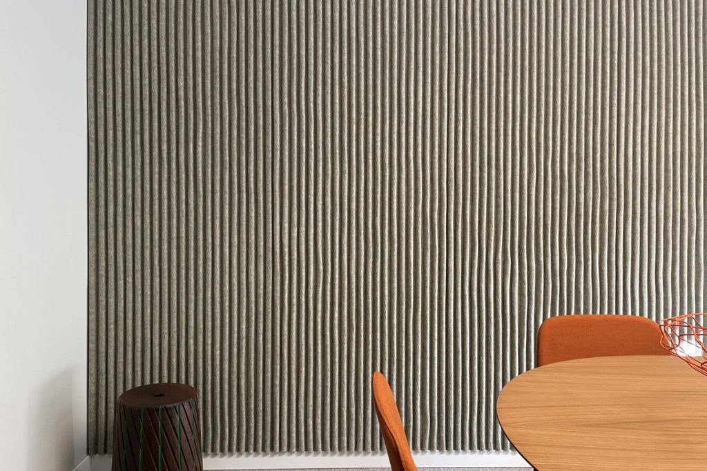 Tunnel nait de notre passion pour le feutre. Une couche souple qui améliore la ductilité du feutre, devenant un revêtement mural tridimensionnel qui s’adapte aux dimensions des architectures.